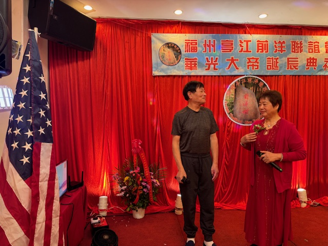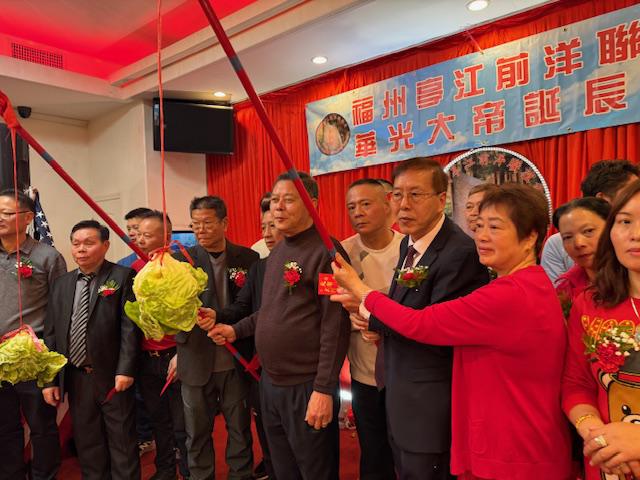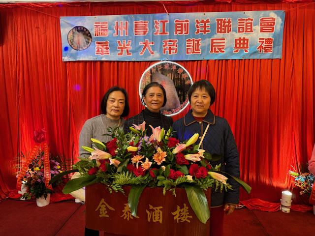 11月17日,美國福州亭江前洋聯誼會舉辦“華光大帝神誕”民俗文化活動在紐約華埠金泰大酒樓舉行。參加今天活動有美國福州亭江前洋聯誼會主席鄭修富、常務理事鄭修乖、林善明、程兴、鄭修新、林善日、林善北、林善政、郑仁光、鄭仁記、郑仁快、林善、林继明、杨能德、林善先、苏诗响、郑仁晃、郑爱、郑仁桂、林善圣、郑本苏、陈太松、林善达、林善军、林继统以及闽籍侨领郭振镪、郑存芳、王孝裘、游必胜、池洪贵等150多位。晚会由郑丽明主持。
