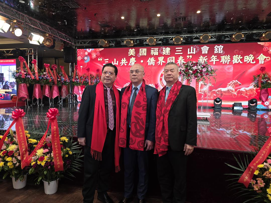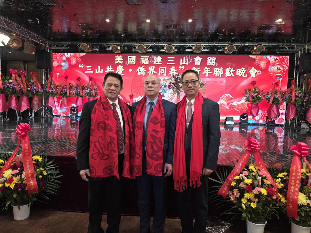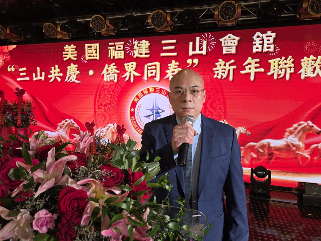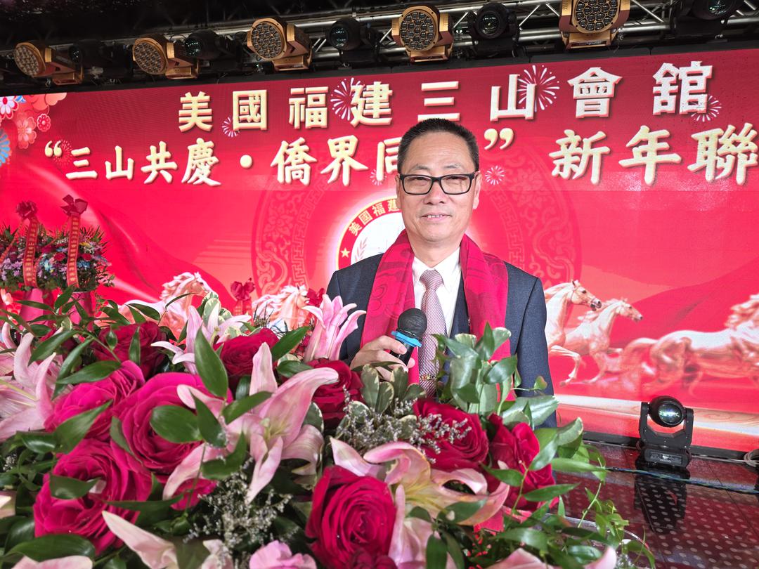 美国福建三山会馆郑振何主席在致“新春贺词”中表示:“ 春节是中华儿女融入血脉的文化符号, 更是镌刻在海内外华夏儿女心中的‘中国魂’。我们今晚欢聚于此, 不仅是为了给美东侨界呈献一份充满家乡味的文化盛宴, 更是要通过传承文化之举,凝聚起团结奋进的磅礴力量。 本会始终秉持‘立会为侨’的宗旨,践行‘守望相助’的理念, 永远是旅美福建乡亲最坚强的后盾、最坚实的纽带和最温暖的港湾! 此外,本会还成功举办了多场具有侨界影响力的活动。 展望新的一年,本会将以昂扬的精神面貌,继续深耕社区, 搭建友谊桥梁,为促进中美友好关系贡献心力,还要厚植文化底蕴, 为支持家乡建设与祖国统一事业再建新功!”