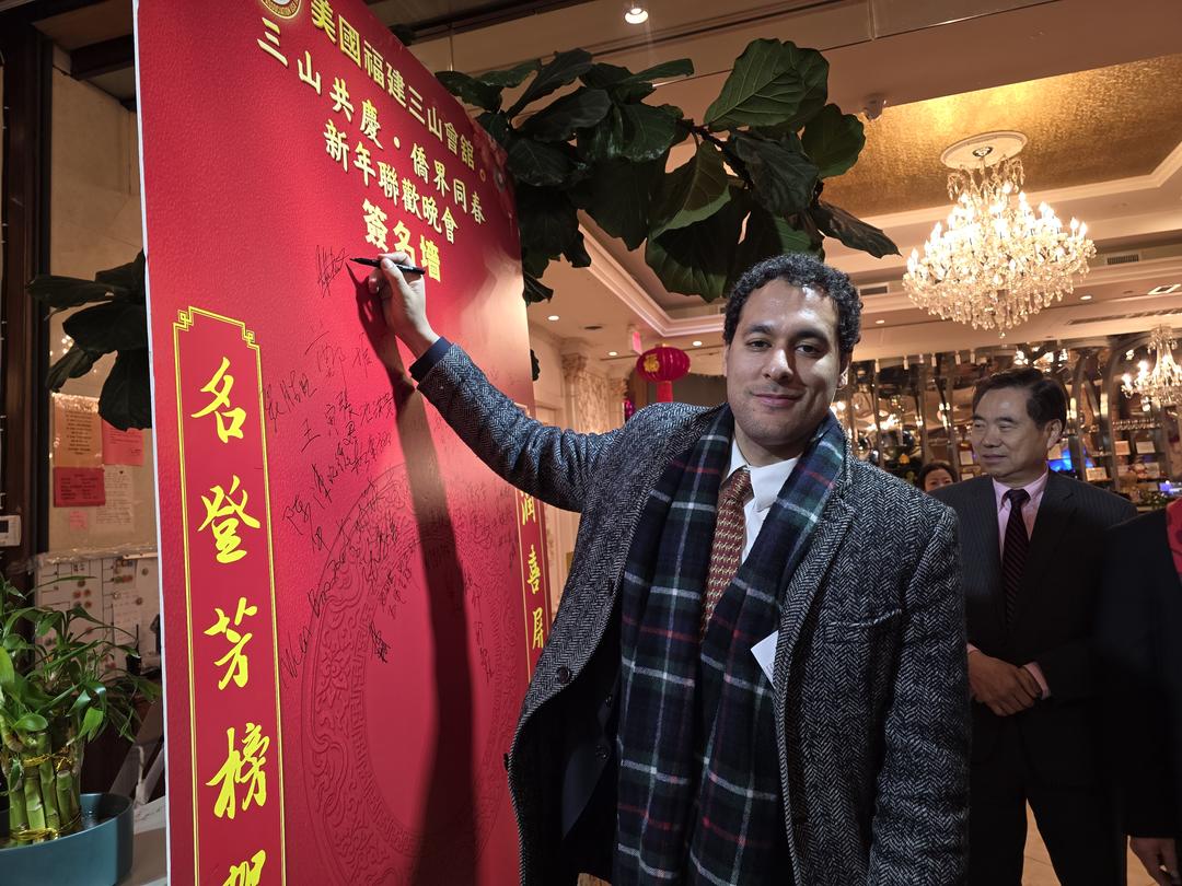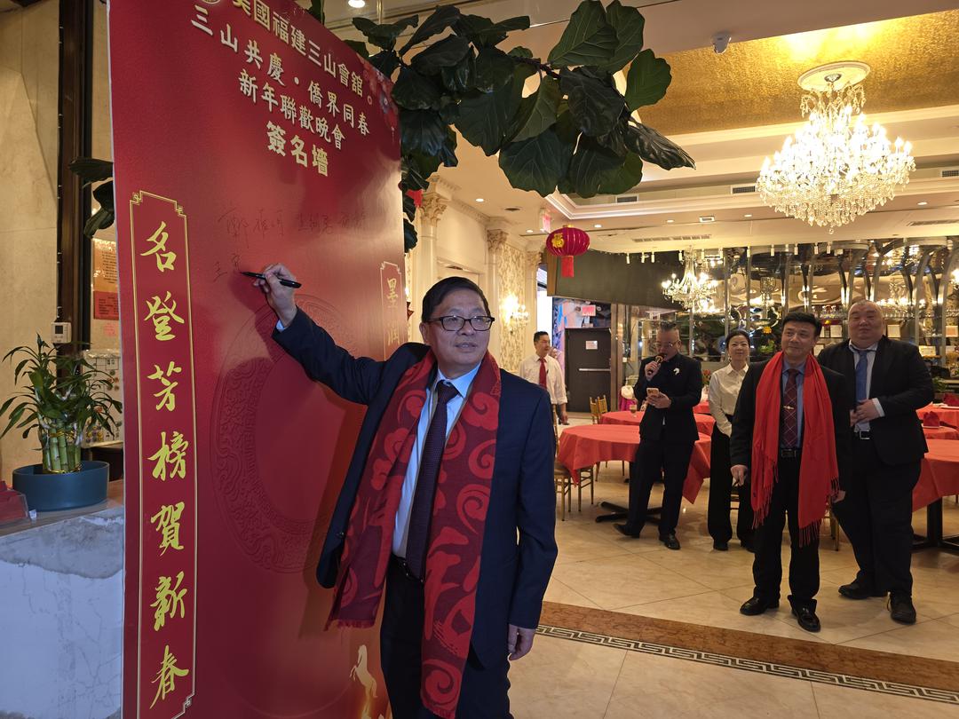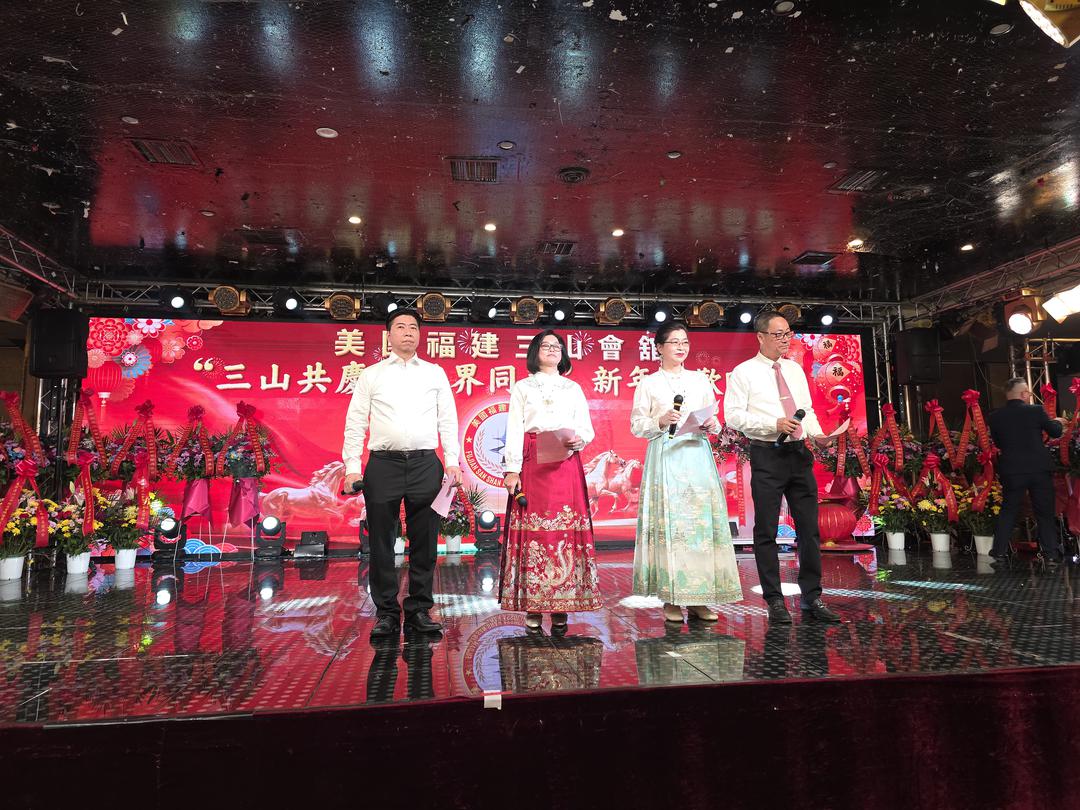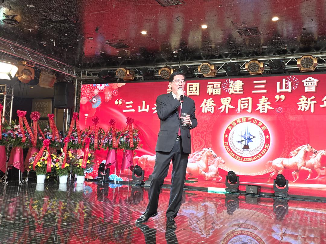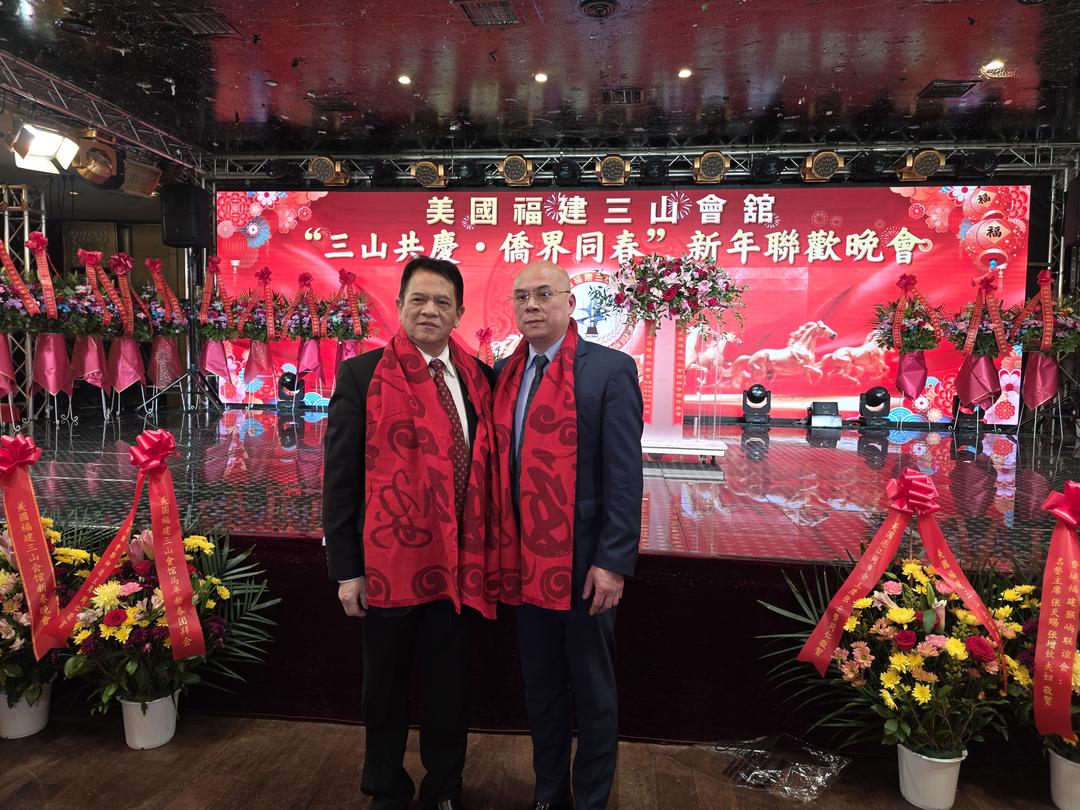美国福建三山会馆郑振何主席在致“新春贺词”中表示:“ 春节是中华儿女融入血脉的文化符号, 更是镌刻在海内外华夏儿女心中的‘中国魂’。我们今晚欢聚于此, 不仅是为了给美东侨界呈献一份充满家乡味的文化盛宴, 更是要通过传承文化之举,凝聚起团结奋进的磅礴力量。 本会始终秉持‘立会为侨’的宗旨,践行‘守望相助’的理念, 永远是旅美福建乡亲最坚强的后盾、最坚实的纽带和最温暖的港湾! 此外,本会还成功举办了多场具有侨界影响力的活动。 展望新的一年,本会将以昂扬的精神面貌,继续深耕社区, 搭建友谊桥梁,为促进中美友好关系贡献心力,还要厚植文化底蕴, 为支持家乡建设与祖国统一事业再建新功!”