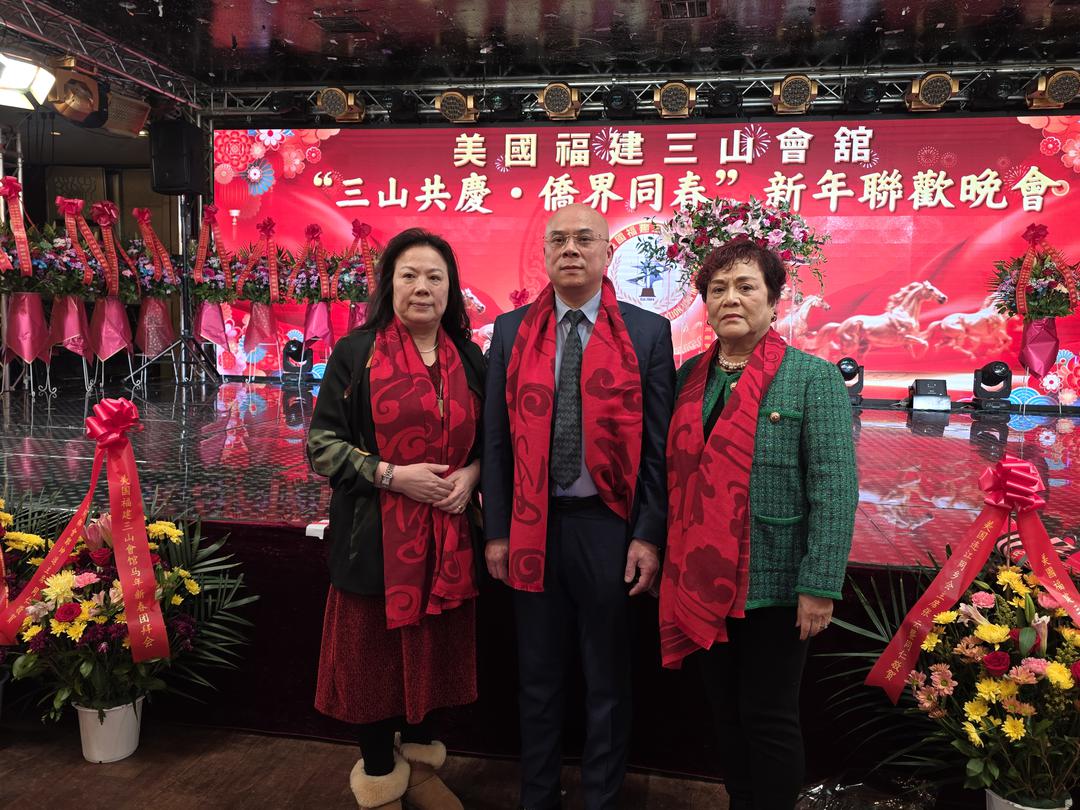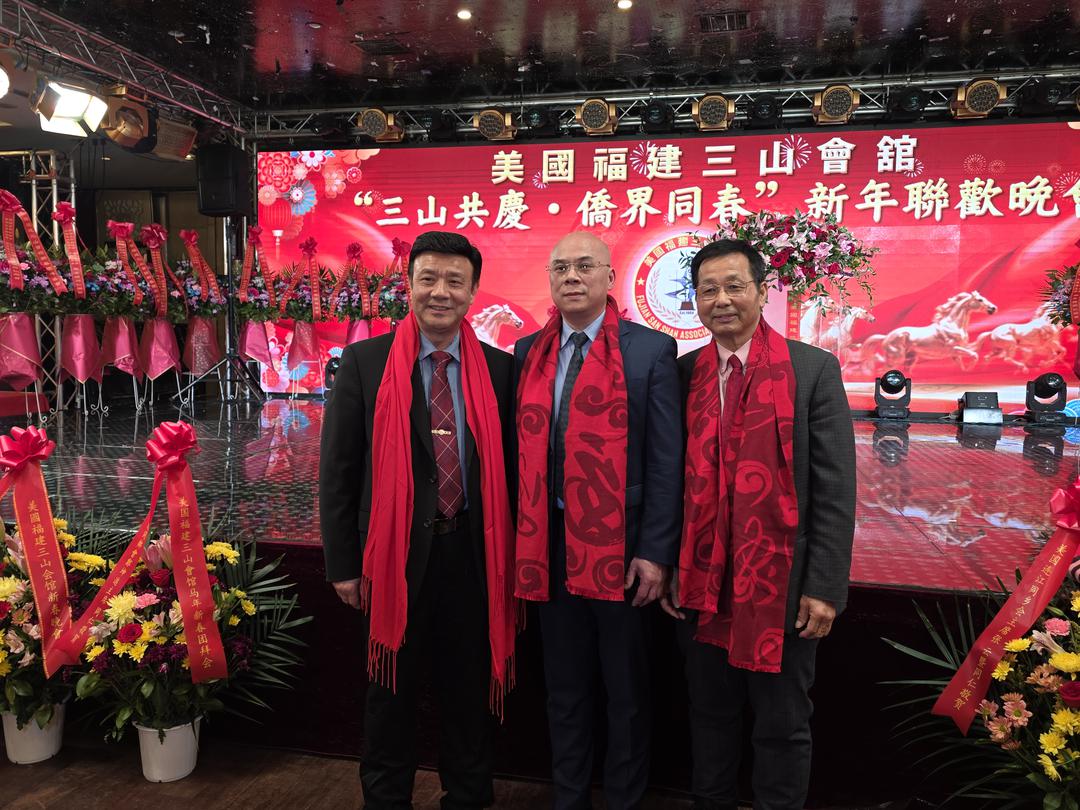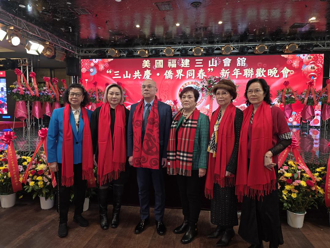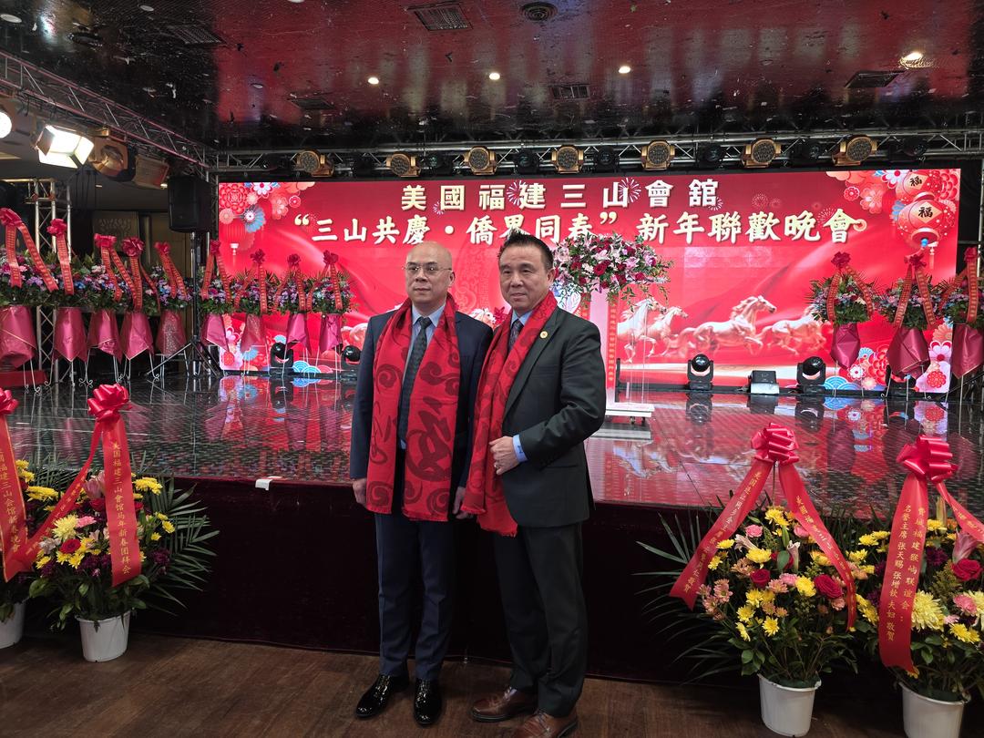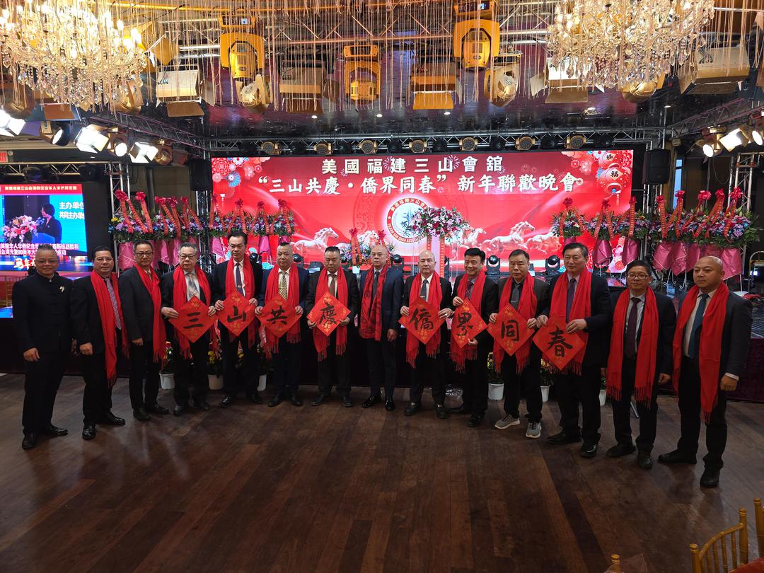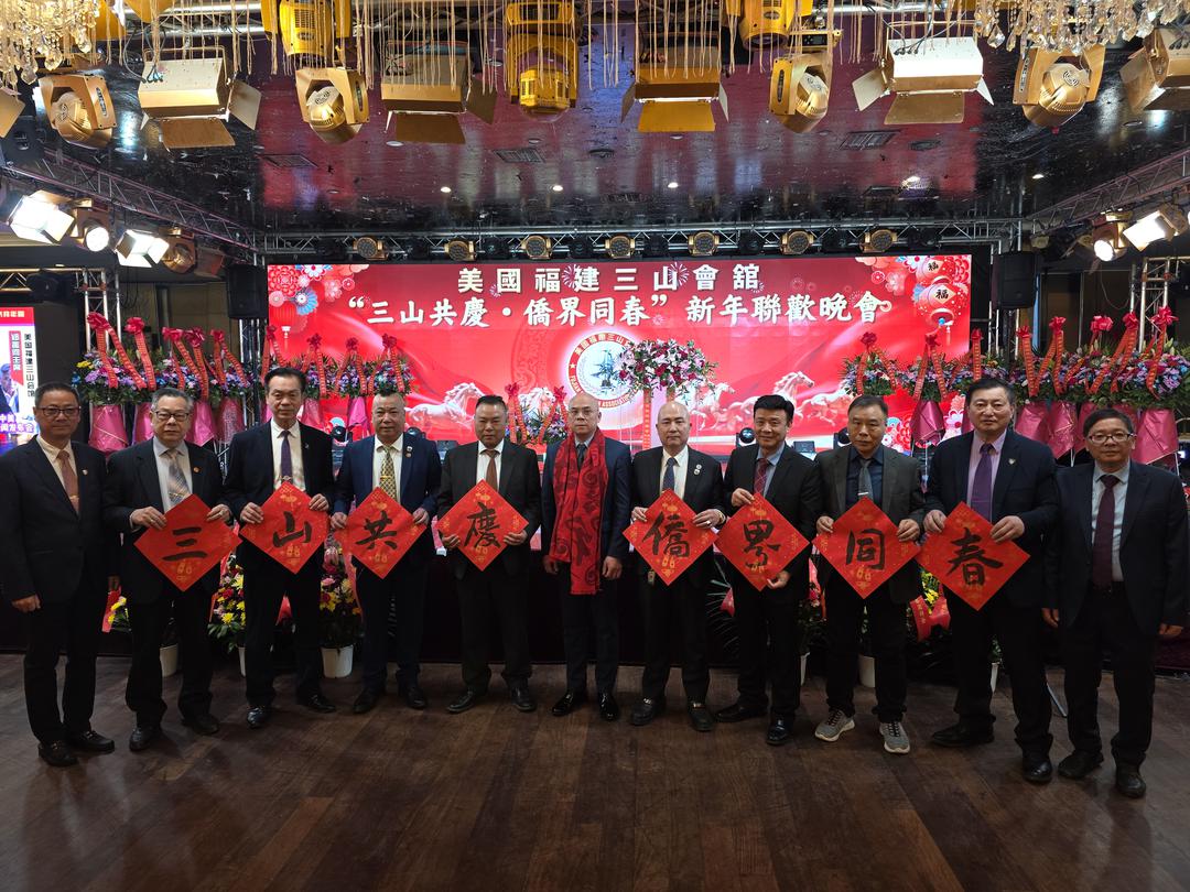 三山逐梦鲲鹏志,一马平川锦绣程!2月25日, 为了共贺中国新年,激扬奋进力量, 美国福建三山会馆在纽约君豪大酒楼举行“三山共庆.侨界同春” 新年联欢晚会。同时,也向全球华人华侨拜年,表达新春的祝福! 中国驻纽约总领馆侨务处主任潘焱、 领事向裕韬和多位民选官员出席,逾400位社区代表参加。