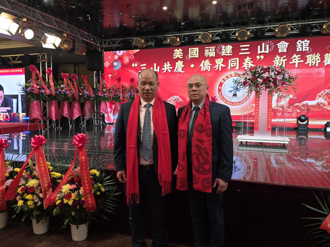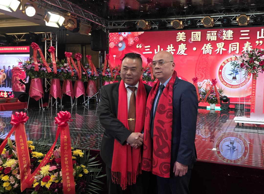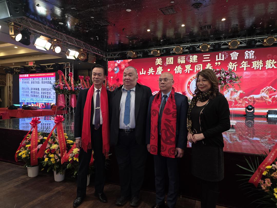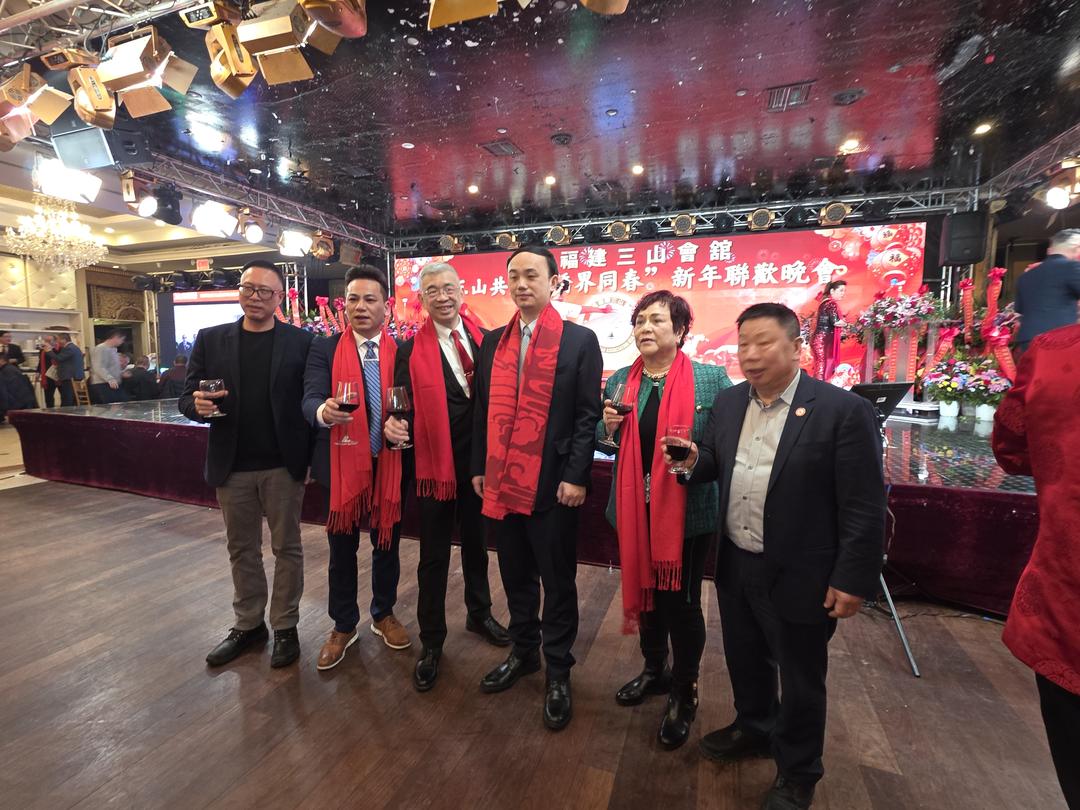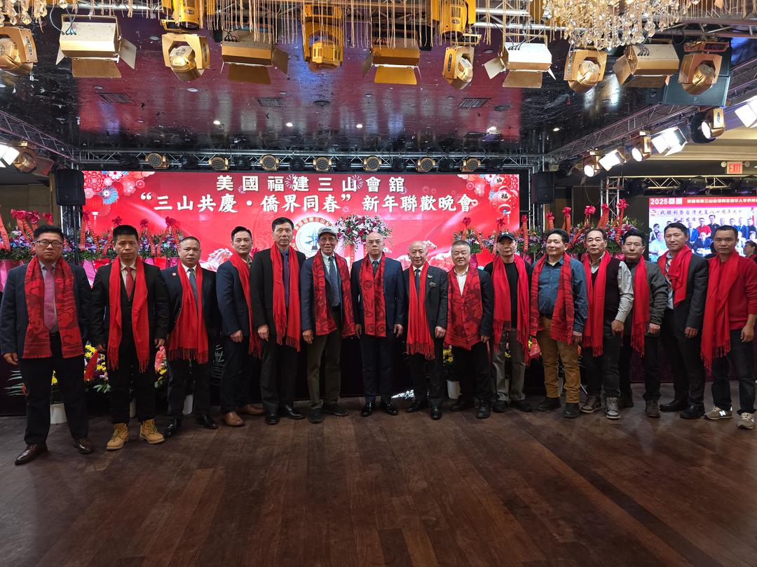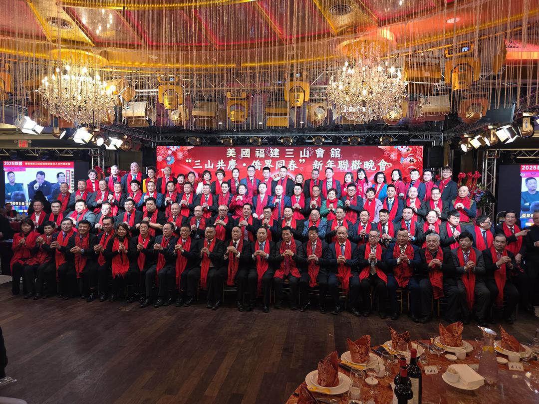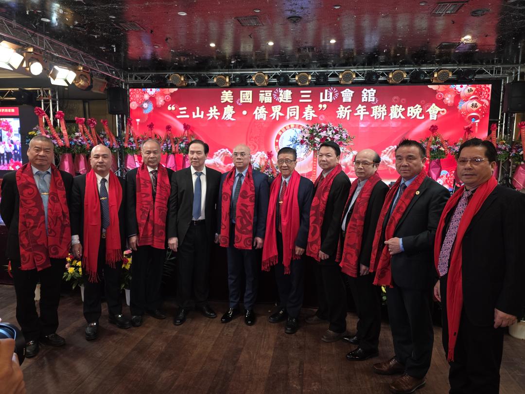 三山逐梦鲲鹏志,一马平川锦绣程!2月25日, 为了共贺中国新年,激扬奋进力量, 美国福建三山会馆在纽约君豪大酒楼举行“三山共庆.侨界同春” 新年联欢晚会。同时,也向全球华人华侨拜年,表达新春的祝福! 中国驻纽约总领馆侨务处主任潘焱、 领事向裕韬和多位民选官员出席,逾400位社区代表参加。