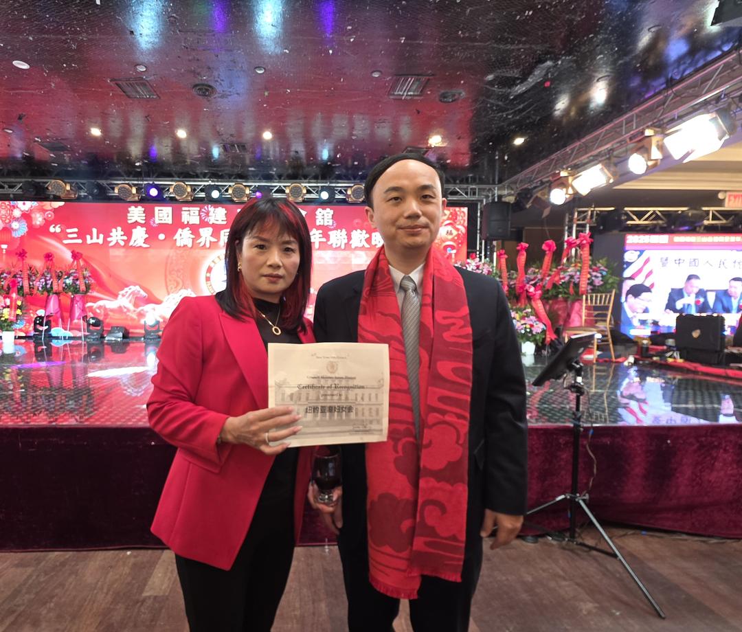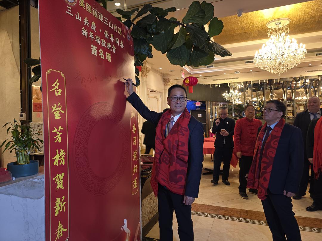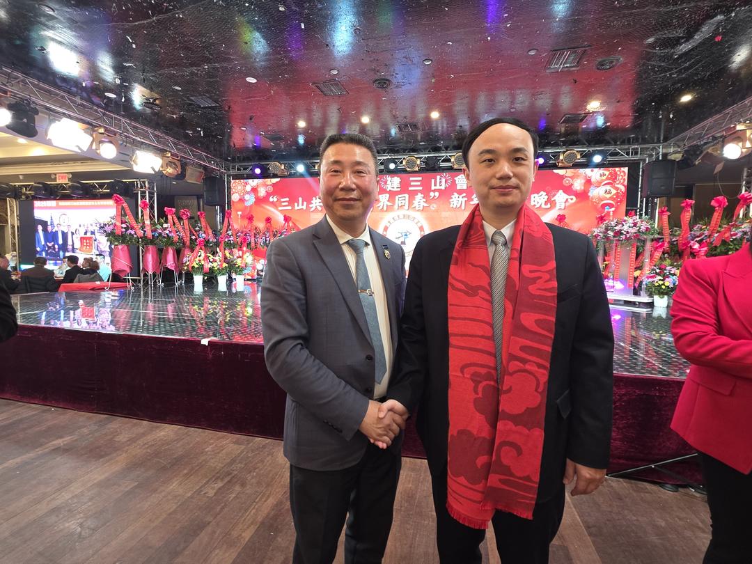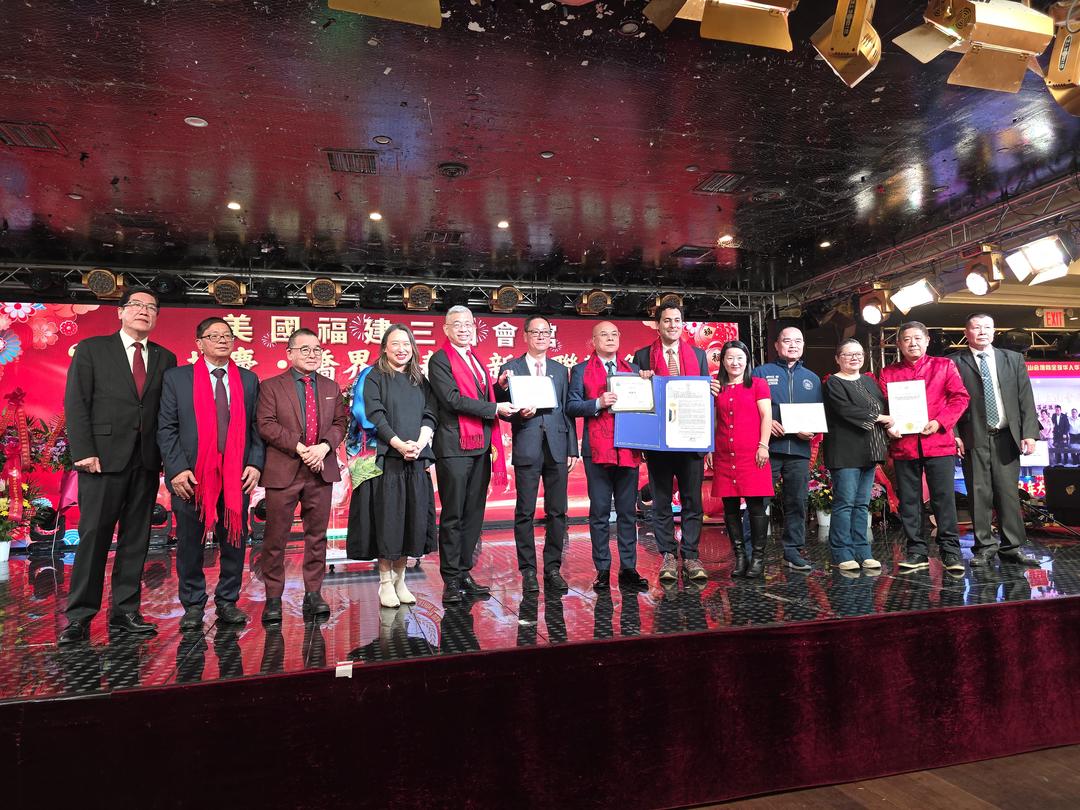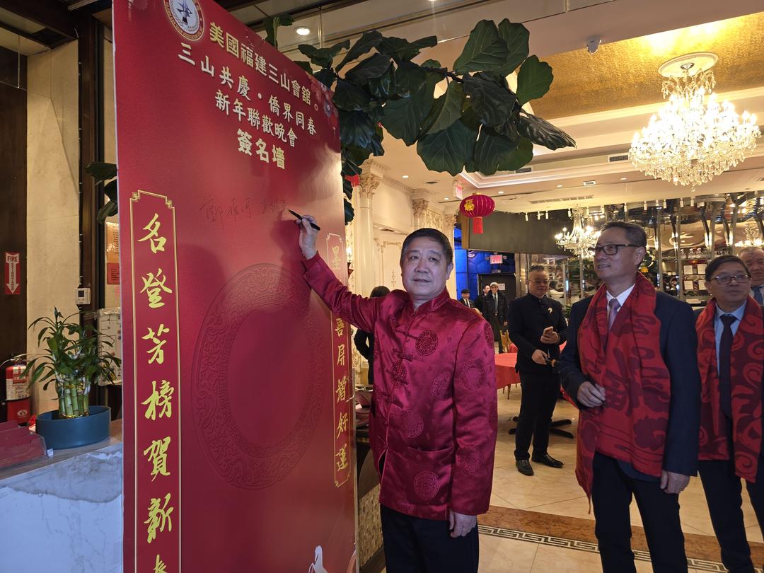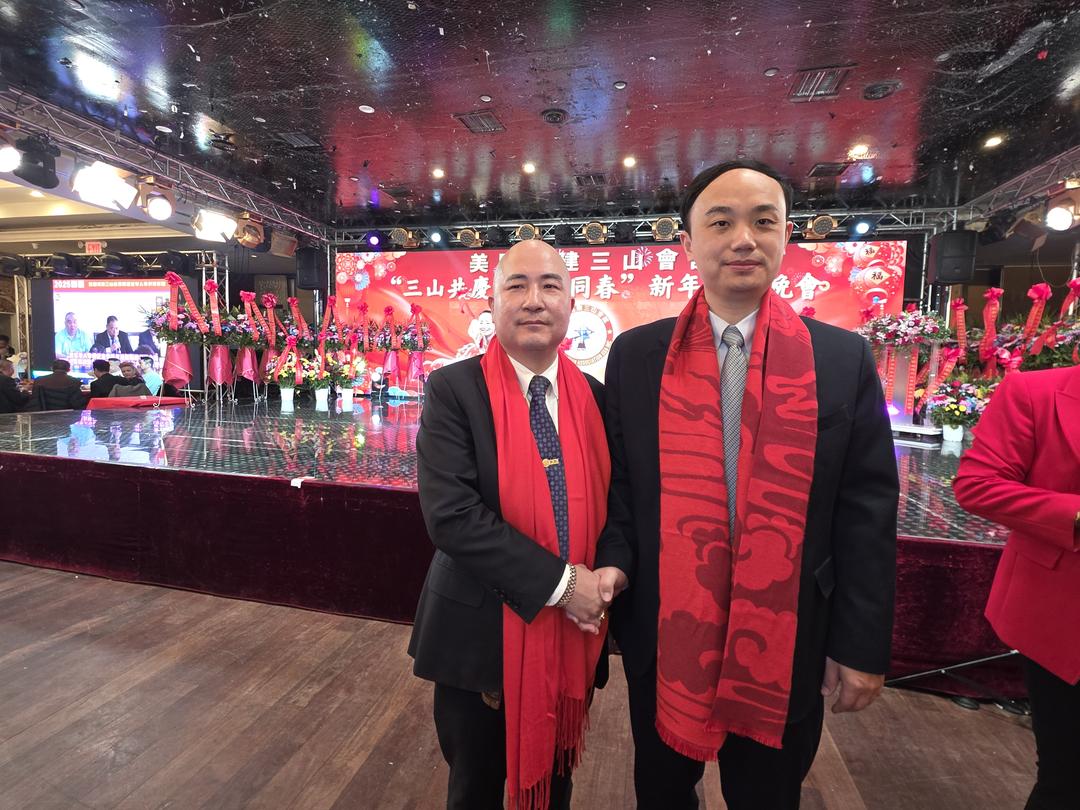 三山逐梦鲲鹏志,一马平川锦绣程!2月25日, 为了共贺中国新年,激扬奋进力量, 美国福建三山会馆在纽约君豪大酒楼举行“三山共庆.侨界同春” 新年联欢晚会。同时,也向全球华人华侨拜年,表达新春的祝福! 中国驻纽约总领馆侨务处主任潘焱、 领事向裕韬和多位民选官员出席,逾400位社区代表参加。