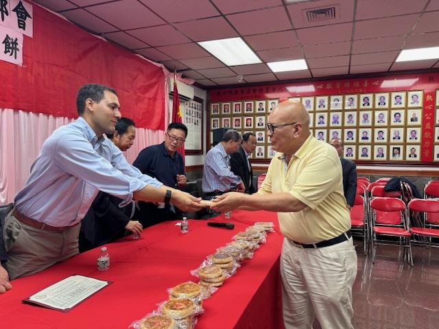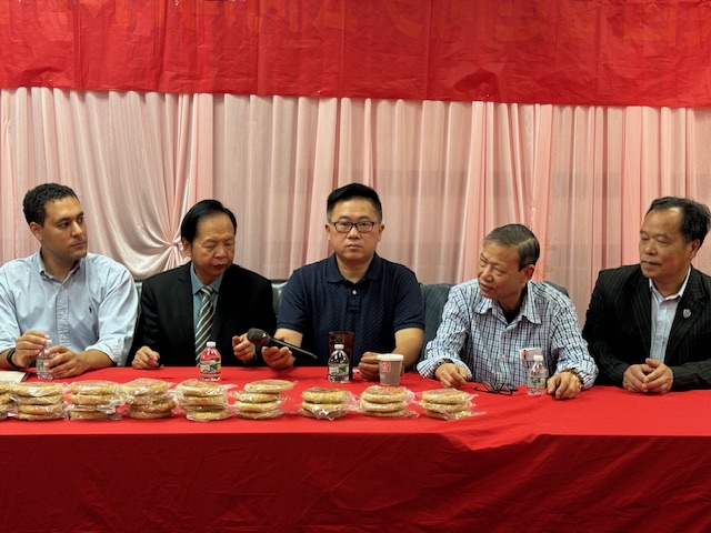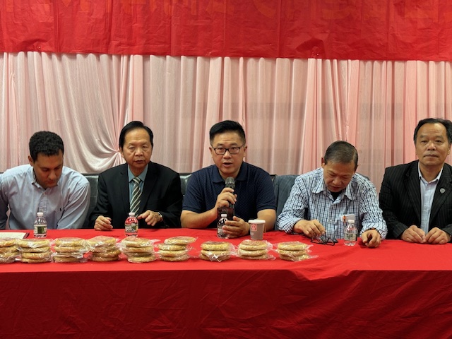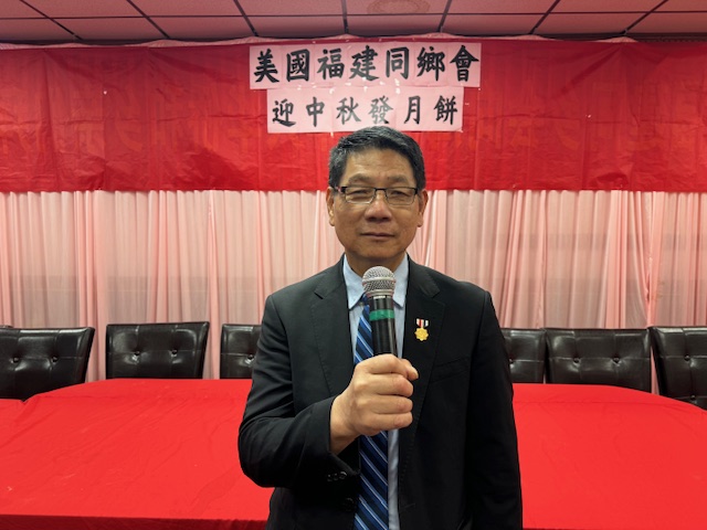 美国福建同乡会主席助理陳春國致詞:今日暖意盈怀,能与乡音相契、心意相融的福建乡亲,聚在唐人街福建同乡会大楼里,共赴(复)这份家乡礼饼之约,我心中满是温情与感动。首先,我谨代表美国福建同乡会刘爱华主席,向每一位到场的乡亲,道一声最诚挚的祝福:中秋安康!这份跨越山海的家乡牵挂,我们今日一同稳稳接住!
