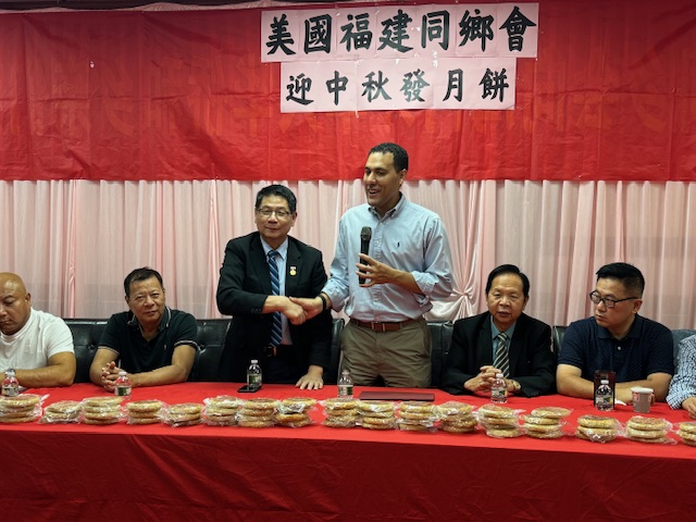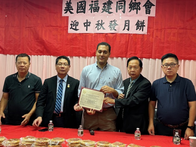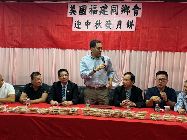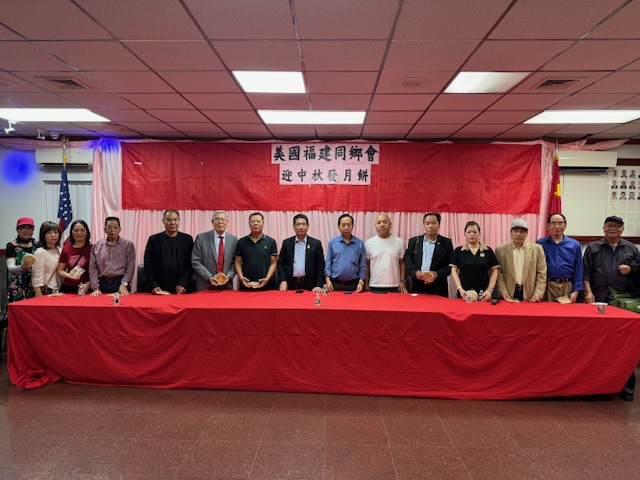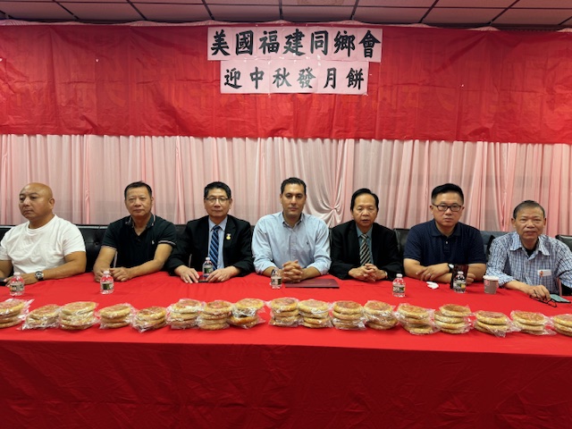 10月5日,美國福建同鄉會舉辦一年一度中秋發月餅活動在同鄉會门口舉行。參加今天活動有美国福建同乡会主席刘爱华、名譽主席陈学端、理事長郑育、第一常務副主席林雨官、主席助理陈春国、秘書長王灼官、辦公室主任劉增发、同鄉會樓宇局及纽约市议员马泰先生、美国長乐南乡联合会陈增平主席、美國長乐码头联谊会郑天栋主席,美国福建首占同乡会郑建宁主席、美國長乐三溪联谊会潘宝如候任主席、美国長乐高安同乡会王灼官主席、美国長乐潭头联谊会刘增发主席、美国大宏联合会施鸿宇主席 、美國長乐二刘联谊会刘春媄名誉主席、美国長乐文溪联谊会刘宜振主席、美国佛教会陈剑云会長、美国福州业余闽剧团刘增木团長、还有王建忠、高新华、潘新华、潘天栋、林国利、林迅利、潘国用、林优敏 、刘 榕、郑可垒、林立明、卢天思、潘聪斗、林凤萍、陈修兴、刘增平 、林学侃、陈和平、陈宗应、刘国林、潘春林、郑美述、潘锦凤 、陈秀娥、刘秀华 、陈仕芳、郑素贞、郑荫棋、朱俊贵 、張增钦、吴振文、林明华、李丽华等参与,以上排名不分先后。
