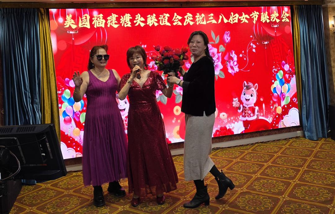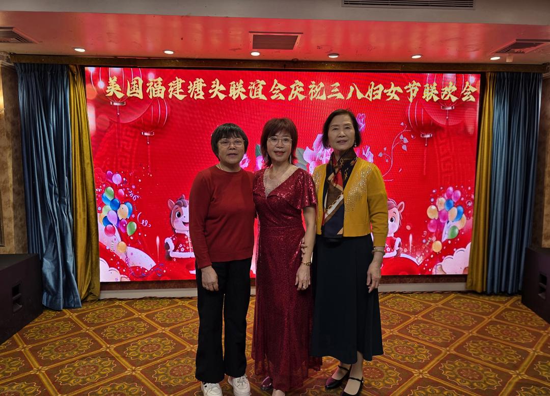 3月8日, 美國福建塘頭聯谊會妇女會舉辦國際三八婦女節聯歡晚會在紐約金阁 大酒樓舉行。妇女会在一年一度的节目里,姐妹們都特别踊躍參加, 使場面更加热闹,這是大家難得相聚,也有安排精彩节目。 美國福建塘頭妇女会会长郑赛娇 、副会长王水仙、委员林锦芳、肖雪珠、林凤玉,李秀珠、董秋英、 余雅容、肖赛月、 王依珠、李春英、郑美英、陈玉珍、郑秀、李秀娟、杨淑琴、 董秀云、陈莦音、郑美星、 王小华、郑建华、林瑜、董真珠、 陈木仙、 陈兰妹、董秀英、常菊、郑赛仙、肖美云、林容珍、林惠敏、 董秀芳、郑丽英、董惠玲 、林爱华、林玉金、林赛珠、董春艳、董碧英、董春英、董玉华、 陈玉珠,陈玉英、郑蔡英,郑珠妹,郑依珠,董依秋,倪雅英, 林赛月,翁香妹,李翠花,林翠云,倪瑞娥,林燕红,王丽钦, 林赛仙,董秀云,董雪钦,雪钦妹,玉金,郑木香,董玉凤, 林秀兰,董丽容,余玉榕,董碧云,依兰,倪秀清,张秀云, 杨碧娟,黄爱兰瑞康嫂,江香娇,柳岸君,张金华,郑爱明, 张爱银,董秀琳,董英,董琴香,秀清等。 以及美國福建塘頭聯谊會主席董用春、及本會主要成員余志春, 林慶強、董启銮,董茂飞,董信强,严日华,董金海、鄭濟興、 林克武、林慶建(浦三)、林庆建(后街),林年兴、董家登、 林长文,董齐仁、林翊汀、刘景银、董家玉、林庆章,余坦钦, 董家忠(前三),董家庄,董茂桂,董孝梓,董天武,董家国, 董礼明,林年彬,董月弟,董仲钦,林庆贤,董家鉊,林年财, 董仲榕,董家利,林永达,董必天,董礼坚,董龙官,董家建, 林志楠,何建生,董瑞敏,林俊等150多位。 联欢会由项静文主持。