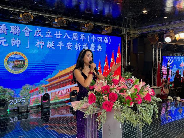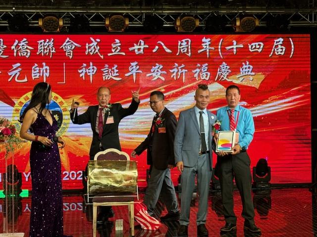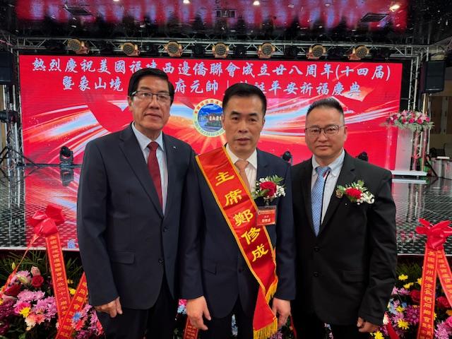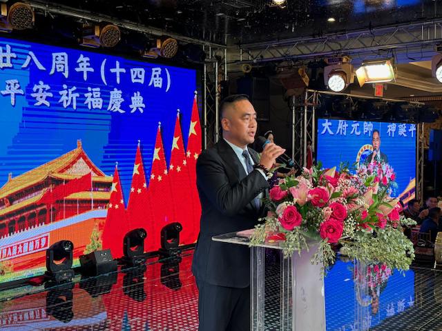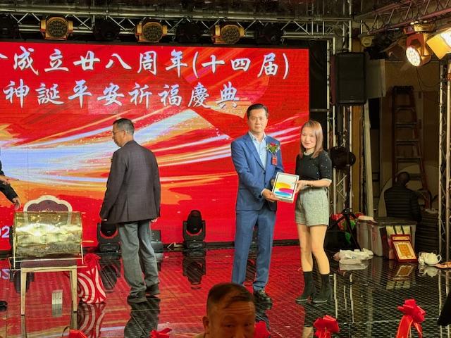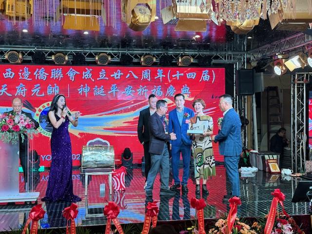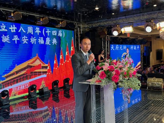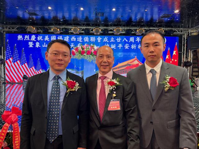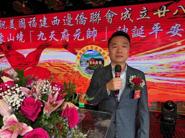 中国驻纽约总领馆领事荣顶致词:今晚与我同事王隆浩一起参加西边侨联会庆典活动。僑聯會多年來支持祖国发展建设,展现了华人华侨的良好形象。今年是新中国成立76周年同时也是中美建交四十六周年,希望貴会继续发扬爱国爱乡的优良传统,為侨胞构建和谐侨社、促进中美民间友好做出更大贡献!最后祝美国西邊僑聯會队伍昌盛、蒸蒸日上。祝愿各位同胞身体健康、阖家幸福、万事如意!
