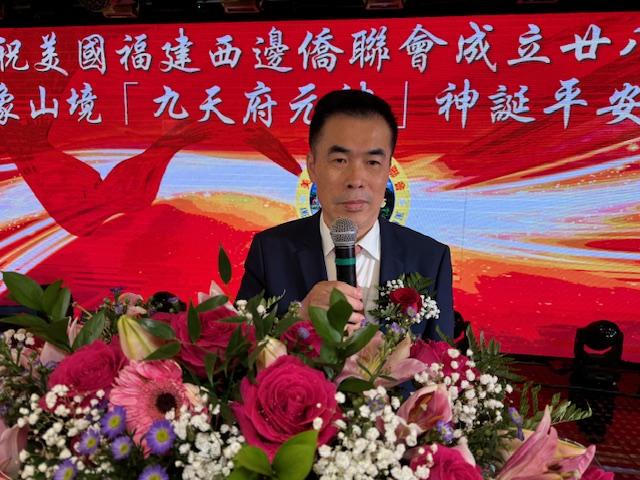 美国福建西边侨联会主席郑修成致欢迎词:“金秋十月、丹桂飘香”今晚君豪大酒楼灯火辉煌、高朋满座、大家欢聚一堂,共同庆祝美国福建西边侨联会成立二十八周年暨《象山境九天府元帅千秋神诞祈福》联欢晚会、谨让我代表美国福西边侨联会全体同仁,向出席盛会的各位.表示最热烈的欢迎,并致以诚挚的敬意!
