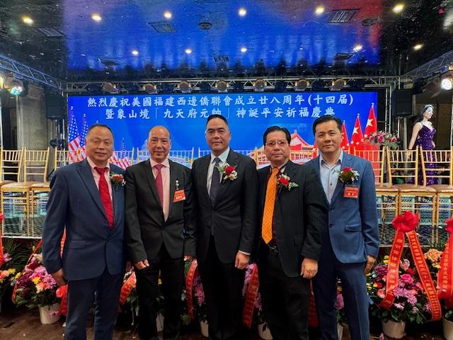 参加庆典活动的有中国驻纽约总领馆领事荣顶、王隆浩、西邊侨联会主席郑修成、名誉主席杨英其、张元昭、郑 伟、总顾问陈善铨、企业董事长王贵阳 、陈李忠、企业执行会长郑 新 、王孟腾、杨英勤、陈 汇、陈 何、企业执行副会长陈善旭、李则顺、郑修敏、杨英晖、张勋铭、主要成员有:郑修存、郑仁幌、郑仁华、郑仁敏、郑仁锦、张锦辉、陈存佑、王孟江、冯振海、张纹新、杨英基、王孟铨、杨华锋、杨英达、张祖锦、张元胜、王建灯、郑修存、陈则忠、郑于斌、冯振辉、王孔德、王孔辉、张季瑜、郑 琛、郑建煌、陈继官、张修惠、郑仁胜、王孟忠、李振强、李振达、张元恒、张振山、王蒙庭、陈津津、王孔真、张元晶、李则辉、张元伟、王孟辉、郑修裕、王孔锥、杨英建、张涛、王孔东、魏丽闽、陈治意、杨英贵、王孔容、陈存辉、李培殿、陈师平、郑立华、郑代平、陈师国、郑仁如、郑齐明、郑修霖、余玉容、李则英、郑 清、林 华、吴观潮等乡亲及社团福建同乡会陈 恒主席等众侨领代表1300多人。