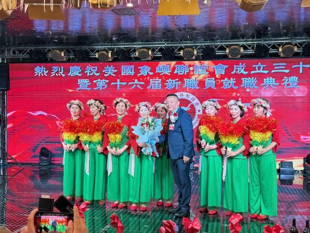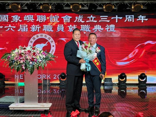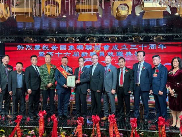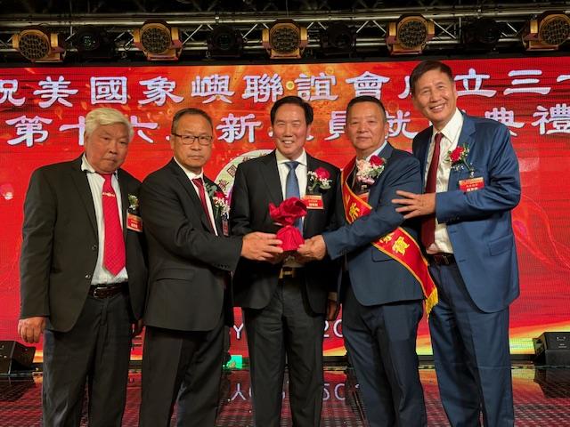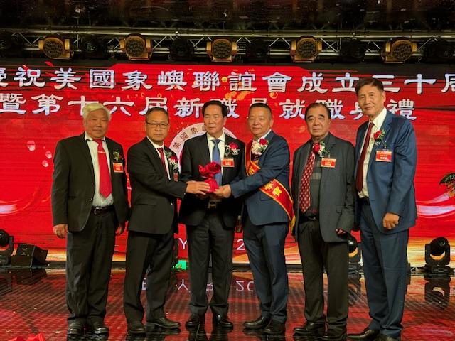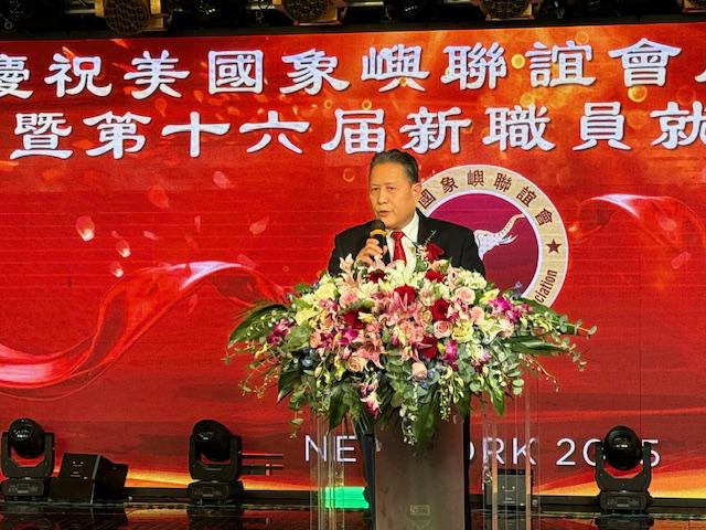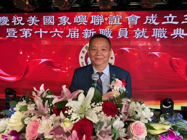 新任主席陳崇寶致詞:大家晚上好!在這金秋季節,我們歡聚在充滿喜氣的君豪大酒樓,共同慶祝美國象嶼聯誼會成立30週年暨第16屆新職員就職盛典。首先,謹讓我代表美國象嶼聊谊會第16屆全體同仁,向百忙中蒞臨盛典的各位中美長官、各位嘉賓以及父老鄉親、姑嫂姐妹們,表示熱烈的歡迎和衷心的感謝!感謝大家對美國象嶼聯誼會的關懷與支持!感謝鄉親們對我的信任和厚愛!