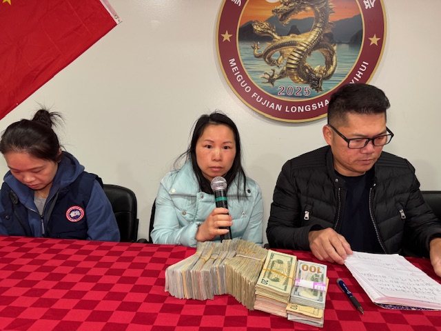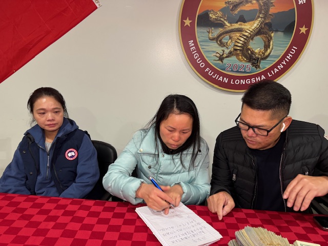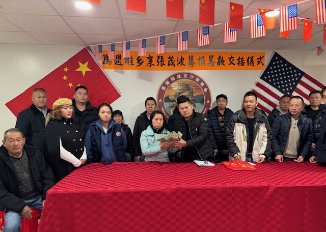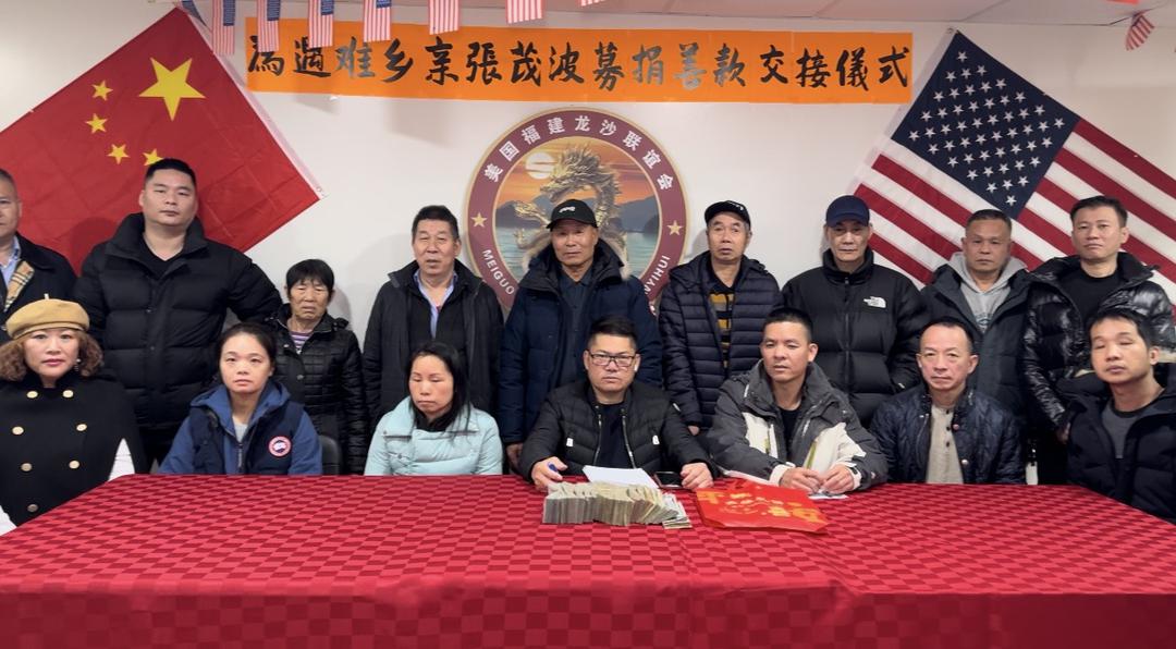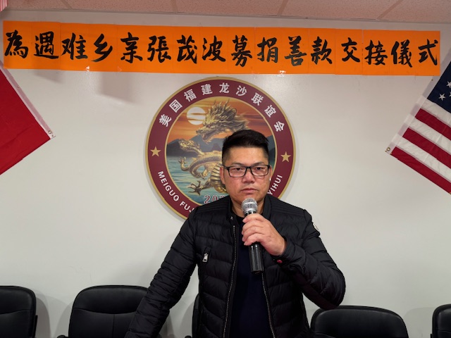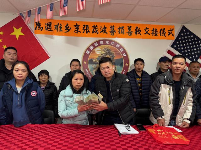 11月14日,美國福建龍沙聯誼會為遇難鄉親張茂波募捐善款约9万多美元交接仪式发布会在布碌仑会所举行。参加今天交接仪式有美國連江同鄉會名譽主席孫傳進, 美国龙沙联谊会主席黄势平、常务副主席张茂格、林柏钦、黄建谋、黄耀原、副秘书长林丛荣、办公室主任黄建雄、副主席黄增秀、李爱云、黄雪珠、黃增連、林铨伙、家属代表张美珍、吴修海、张依章、张铭俤、张振和、遗孀任丽榕等。