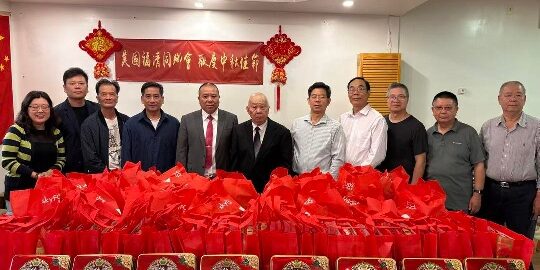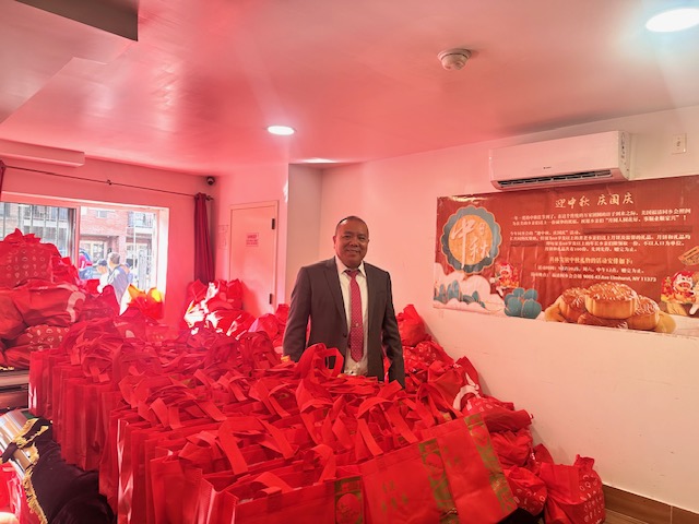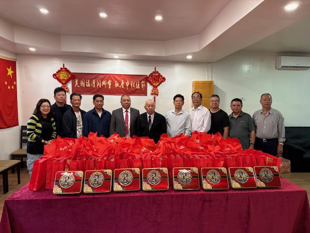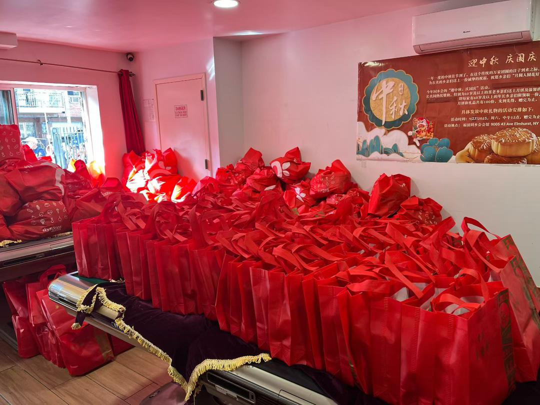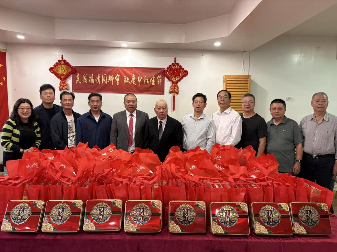 9月27日,“花好月圆迎中秋,盛世华诞庆国庆!为庆祝双节同至,美国福清同乡会继续弘扬伟大中华民族的文化传统美德,联谊乡亲,发扬敬老活动,照例为在美的乡亲们送上一份诚挚的祝福,祝愿乡亲们“月圆人圆花好,事顺业顺家兴”!今年美国福清同乡会的“庆中秋、迎国庆”赠月饼送佳礼活动在福清同乡会会馆举行,届时同乡会照例将特别为60岁及以上的耆老乡亲们送上月饼及温馨的礼品。月饼和礼品均以家庭为单位领取,即每家有60岁及以上的年长乡亲们限领取一份,不以人口为单位。月饼和礼品共有100份。