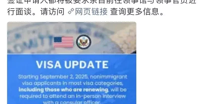 2025年7月25日,美国国务院发布了一份名为《Interview Waiver Update》的官方声明,宣布从9月2日起,美国的非移民签证政策将发生重大变化。