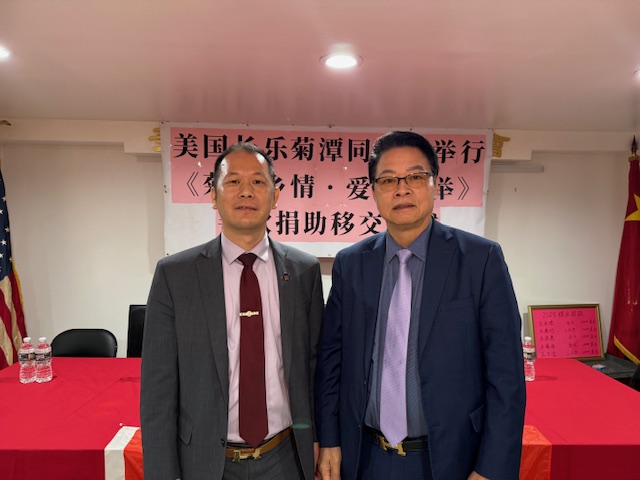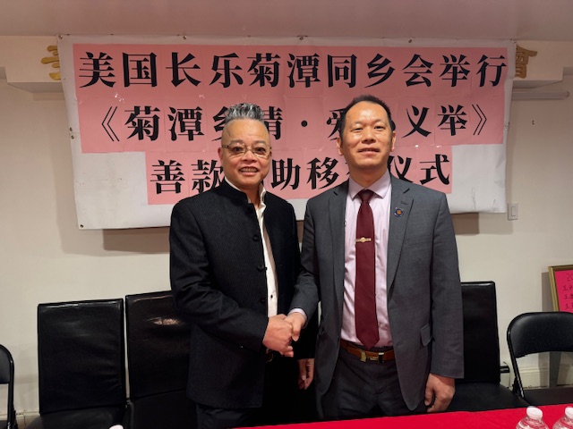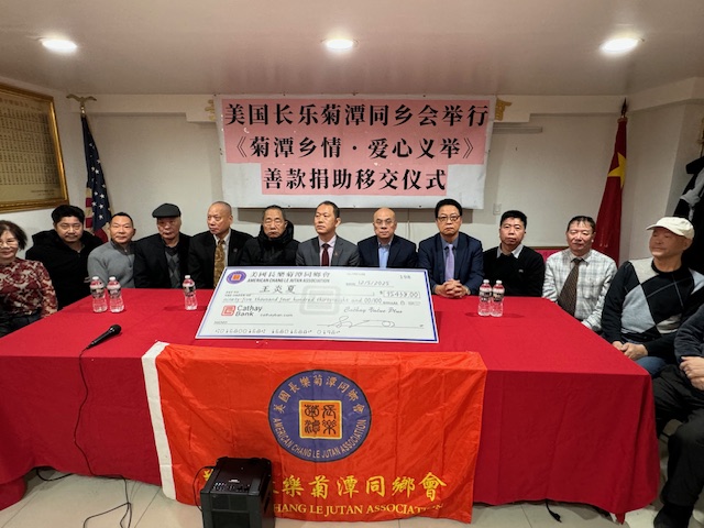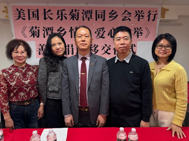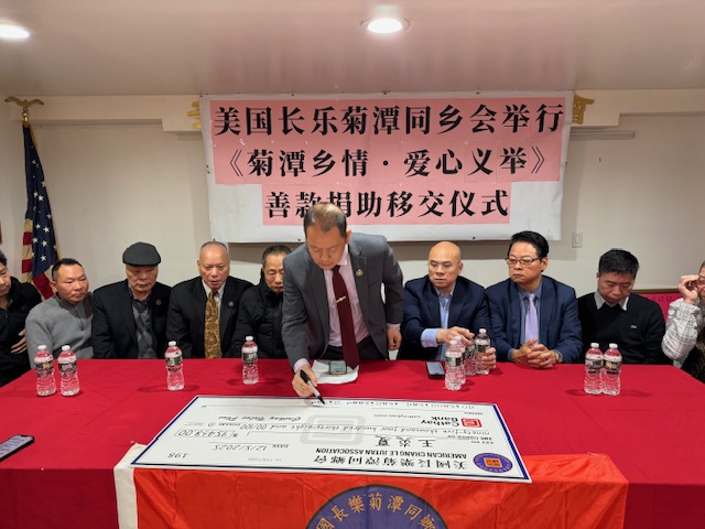 12月9日,美國長樂菊潭同鄉會舉辦「菊潭鄉情、愛心義舉」為鄉親王炎夏鄉親醫療費九萬多美元移交儀式發布會在法拉盛舉行。出席本次活动的有:美国长乐菊潭同乡会王玉武主席、议长王晨暹、第一常务副主席王荣江、美国福建三山会馆郑振何主席、王寅秘书长、菊潭同乡会创会主席王永享、名誉主席王优奇、王文剑、王文美、王永应、执行主席王明建、王晨暾、荣誉议长王木平、常务副主席王文淦、王宗宝、王云兵、王剑秋、王永慈、王依俊、王增善、王顯泉、王颐强、妇女部长刘爱贞、王美玲、王秋玉等。本次活动由名誉主席王永应主持。