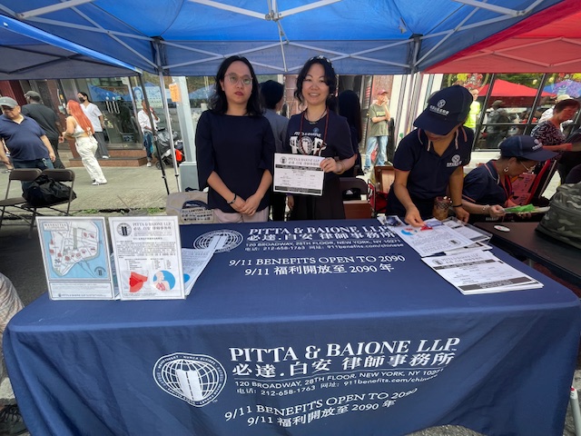 已故民眾的家人也可能會符合9/11 補償金的要求,詳情咨詢必達. 白安律師事務所 中文電話212-658-1763。位於88號怡東商場內的紐約東華協會 也會協助民眾報名申請應得的福利。必達.白安 律師事務所 長期積極參與社區活動,支持華埠社區活動以及保障社區民眾的利益。