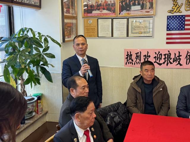 美國福州琅岐同鄉會主席梁守表致歡迎詞:今天,我們怀着无比喜悅与激动的心情,热烈欢迎來自家鄉- -福建省福州市馬尾区琅岐镇侨联江典章主席一行,莅临訪問、指导与联誼。這仅是一次亲切的侨务交流,更是一次凝聚鄉情、共叙发展的盛會。