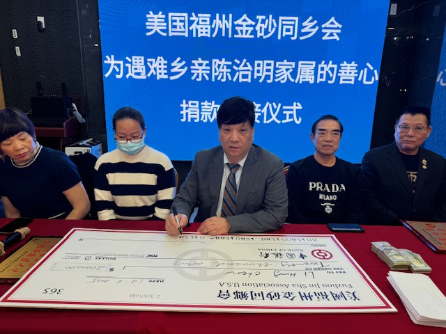 美国福州金砂同乡会執行主席陈治德表示:陳治明乡親不远万里,辗转来美谋取生计,为的是给家庭创造美好的未来,也为自已的人生重新定格,但不幸车祸、英年早逝,人生梦碎。其家庭也陷入苦楚之困境,作为旅美金砂僑胞的会所—美国金砂同乡会充分利用其平台,发揮团結互愛、救助的精神、动员鄉亲、愛心人士伸出援手,踴躍捐款 。在短短数天内共收到贰万多美元. 这笔沉甸甸的善款,是你们用温暖之心编织成希望之网 ,是你们以善爱无疆的精神托住了陳治明乡亲的困苦家庭 ,支撑着他们继续前行的巨大勇气和动力 。这不仅是物质上的支持 ,更是一项小善大爱之举。是以一份用乡情、乡谊串连起来的功德之桥。