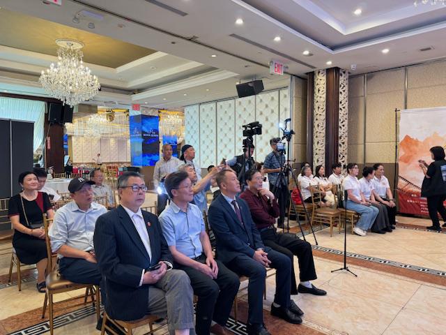 参加今天活动的有中国驻纽约总领馆领侨处副主任李德、领事向裕韬、美国福建侨联总会陈鍵榕主席、美国林氏宗亲联合会代主席林礼国、纽约中国和平统一促进会会长焦圣安、全美华人侨团联合会会长牛红、联邦海外工商总会主席江锦鑫、纽约广东籍校友会联谊总会许兆权名誉總顾问、美国上海同乡会张淙代会长、美国福州琅岐同乡会梁守表主席、美东内蒙古同乡会王桂荣會長、旅美上海同乡会周允會長、纽约台山侨胞妇女联合会王一冰会长、新概念世界慈善艺术协会丹樵会长、美国莆仙同乡会黄明萍会长、美国闽台总商会、华兴基金会、美国林則徐基金会、山东同乡会沈瑛秘书长、华尔街升学智库合伙人徐红红、福州联谊会林魁主席、美国王审之研究会执行主任王永应等,活动由项静文主持。