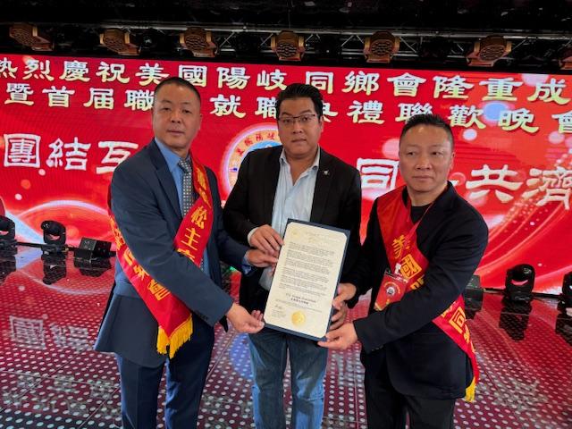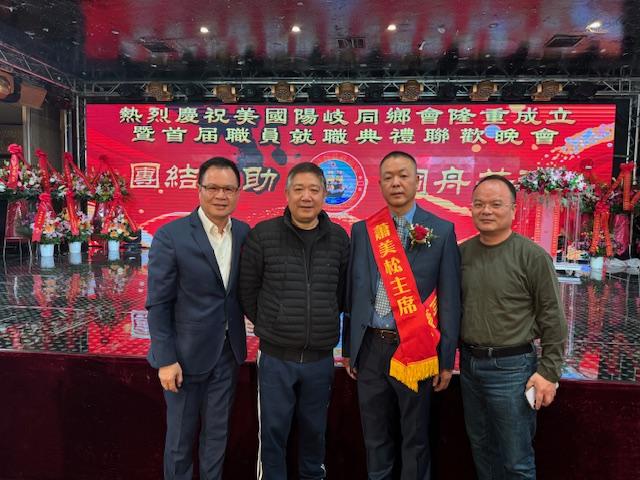 12月2日,美國福建陽岐同鄉會成立暨第一屆職員就職典禮在法拉盛君豪大酒樓舉行。參加今晚活動有美國陽岐同鄉會主席萧美松、紐約州參議員陳學理代表、紐約州眾議員鄭永佳代表、金兑錫代表、紐約市議員馬泰代表、美國福建同鄉會主席陳恒、美國福建公所代主席林孔銀、美國長樂公會主席盧建順、美國福建三山會馆主席郑振何、美國福建會館主席陳昭銀等先後致辞。以及美國陽岐同鄉會主席萧美松、總顾問楊功德、理事長萧濟立、第一常务副主席陳海勇、榮譽主席萧美勇、萧俊國、郑康标、楊禮良、楊禮盛、楊禮飛、萧美桂、萧美樞、萧敏、策會顾問萧美松、萧濟立、楊禮建、鄭康標、蕭秀明、楊功明、蕭美祥、楊開兴、蕭美勇、楊禮盛、楊禮良、陳海勇、蕭俊國、萧濟宣、楊增官、楊賢波、蕭木金、蕭濟旺、蕭濟燕、楊賢琛、蕭濟鑣、蕭濟開、萧濟錡、萧濟濤、萧濟光 、楊發明、萧濟養、楊光、萧丽英、常务副主席江金俤 、郑海鷹、陳文忠、蕭育昇、蕭美亮、楊義華、楊發明、楊凱、蕭濟長、蕭芳勝、楊彪、萧育呂、 楊閩、江冰、楊雅芳、萧濟開、萧金土、萧濟平、法律顧問郑明佑、方利明、秘書長楊禮建、中文秘書萧丽英、楊賢琛、萧濟鑣 、楊開興 、萧 雄、英文秘書董如、劉美嬌、李妙正、辦公室主任萧美祥 以及閩籍僑領1300多位。同乡会是由来自同一个故乡、怀揣共同乡情的人们自愿组成的团体、我们因血脈与亲情联繫走在一起,为了在异乡互相支持,携手前行特此成立同乡会。大会主持人项静文。