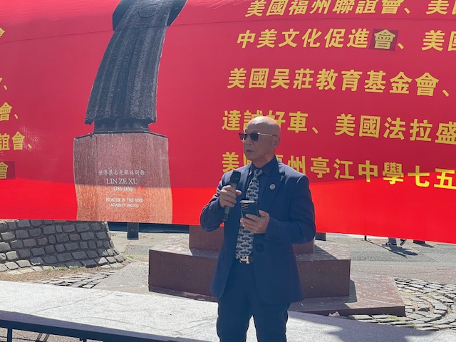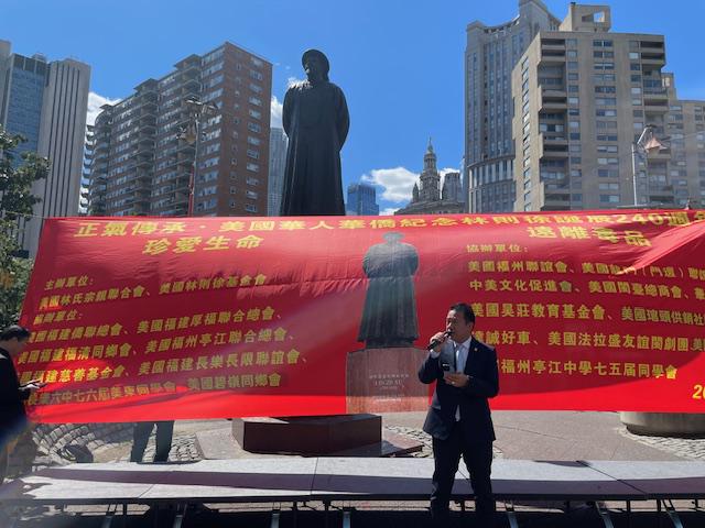 美國林則徐基金會執行主席陈键榕致词:今天,我們齊聚在紐約華埠林則徐廣場,隆重紀念民族英雄林則徐誕辰240週年。能夠與美國林氏宗親聯合會共同主辦這場盛會,作為美國林則徐基金會執行主席,我倍感榮幸,也深感責任重大。