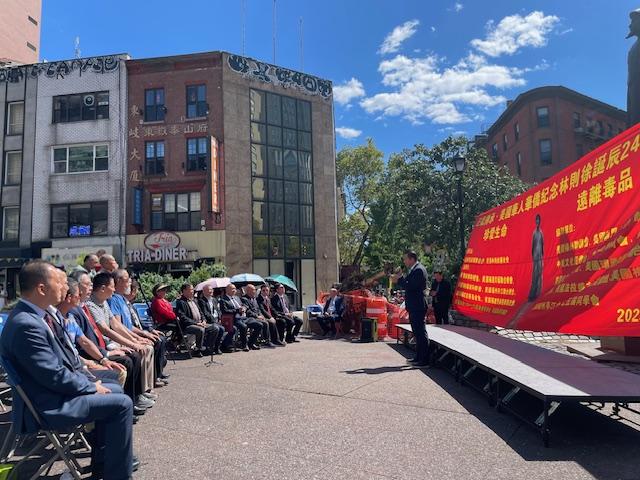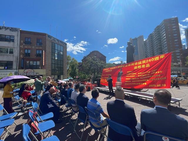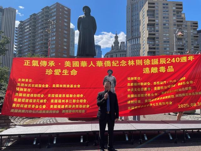 8月30日下午,為紀念民族英雄林則徐誕辰240週年,弘揚林則徐「苟利國家生死以,豈因禍福避趨之」的精神,同時呼籲珍愛生命、遠離毒品,由 美國林氏宗親聯合會、美國林則徐基金會 主辦,眾多僑團協辦的 「美國華人華僑紀念林則徐誕辰240週年紀念大會在紐約華埠林則徐廣場 隆重舉行。