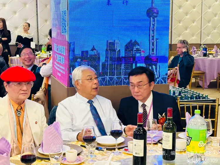 舞台上,四位人士莊重地站著,他們身著正裝,神情肅穆。這一幕讓我想起了自己在上海的學生時代,那時的我們也是這樣意氣風發,懷揣著夢想和希望。如今,雖然身在異國他鄉,但那份對家鄉的眷戀始終未曾改變。