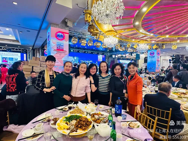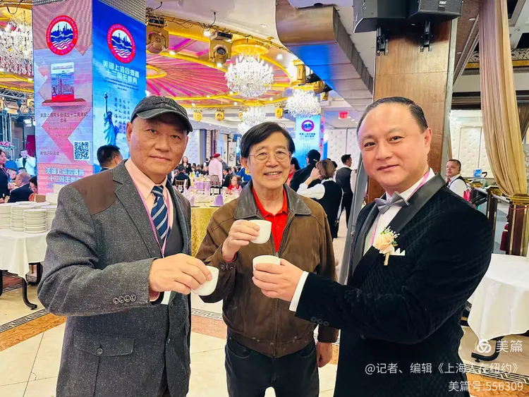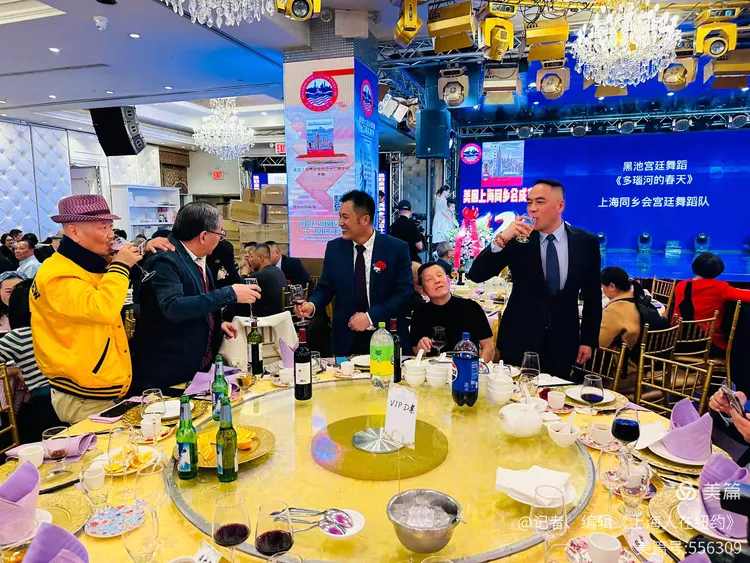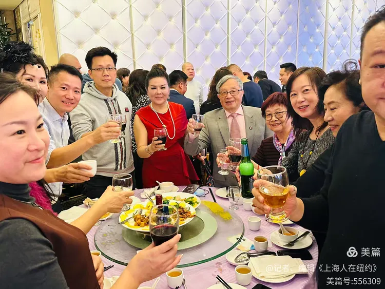 上海人在紐約,總是懷著一份特殊的鄉情。當晚,君豪大酒樓的大廳。布置得華麗莊重,紅色的地毯鋪滿地面,鮮花裝點著每個角落,處處洋溢著喜慶的氛圍。賓客們三三兩兩聚在一起,熱情地交談著,仿佛回到了熟悉的故鄉。