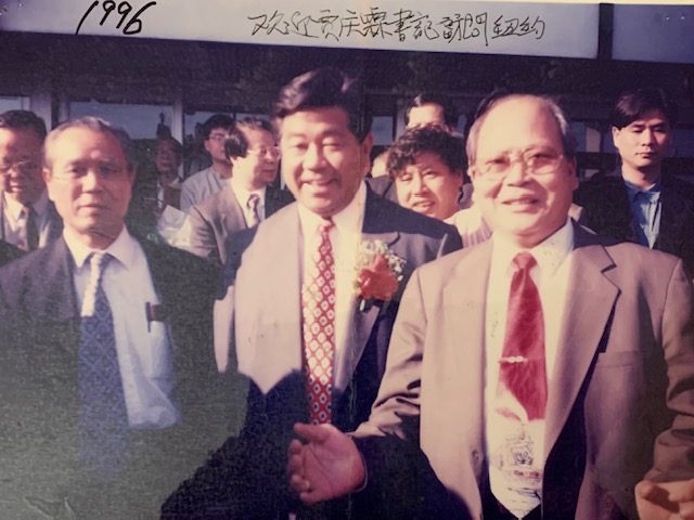 【福建人在美国】 犹记二零零零年纽约唐人街林则徐广场,南海渔村酒楼初立之时。李永钦先生立于楼堂中央,玄色西装笔挺合身,领带在灯影下泛着沉稳光泽,左胸徽章如枚沉默勋章,镌刻着岁月沉淀的坚持与担当。他含笑道迎,眼角皱纹盛着温暖,那笑意不似应酬宾客,反倒如见故友归来的真切。窗前紫绸轻曳,花结系得精巧,暗合闽人家乡的细腻情怀。那一刻,他不仅是酒楼掌舵人,更是长柄人在异乡扎根的精神标识。