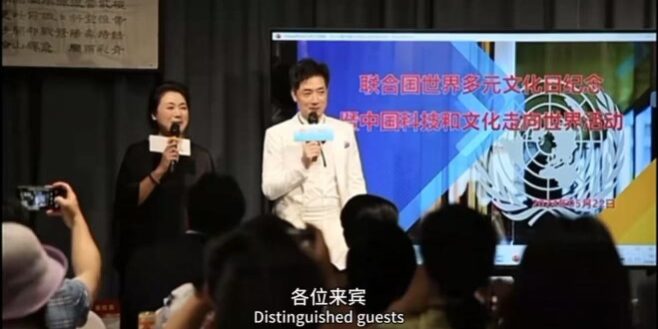 联合国官方活动国际主持人王国权和上海电视台新闻主播冯冰主持联合国世界文化多样性促进对话和发展日花絮5/23