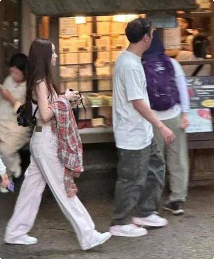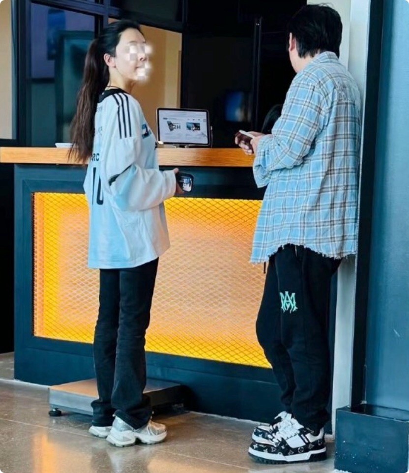 至于一旁的女友,与王思聪手牵手,举止亲密,肢体接触非常自然,她穿着一件灰色的上衣,下身是复古牛仔裤,另一边的小臂还搭着一件外套。
