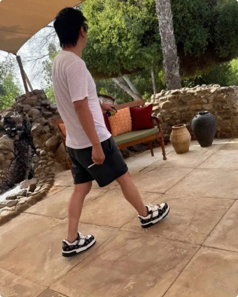 从照片来看,王思聪可以说是相当低调,一身黑色的短袖,搭配宽松休闲裤和板鞋,从头到脚看不出富二代的气质,反倒很像路人。