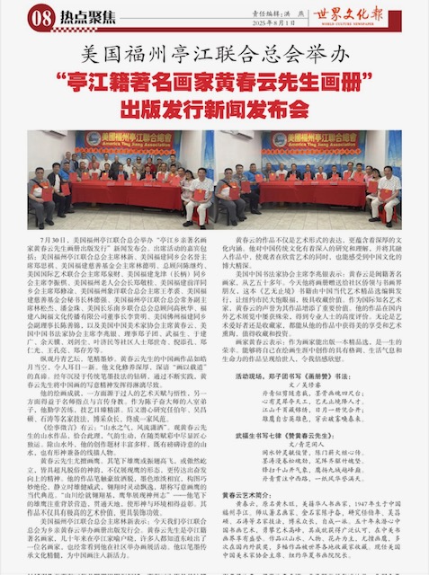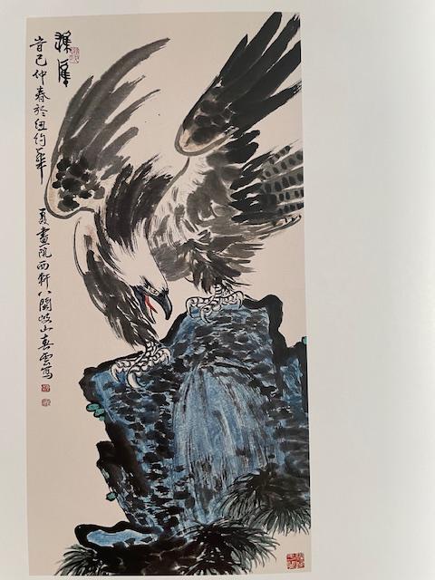 此诗如黄公画鹰:首联伏爪(师承根基),颔联振羽(笔墨双绝),颈联击空(艺术高度),尾联睥睨(国际影响)。尤以“墨涛/笔阵”一联最妙——波涛喻水墨之柔,军阵显笔力之刚,刚柔相济处正是大写意精髓。