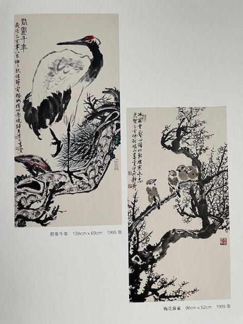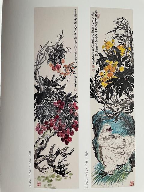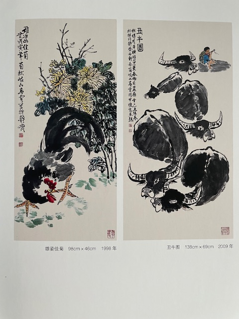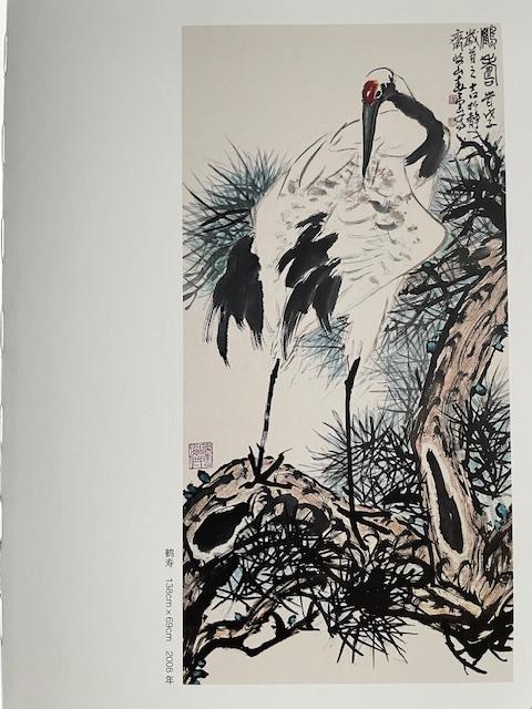 松竹并置:既喻文人风骨,亦指其山水花鸟双绝(《雄风万里》配景常现松竹)