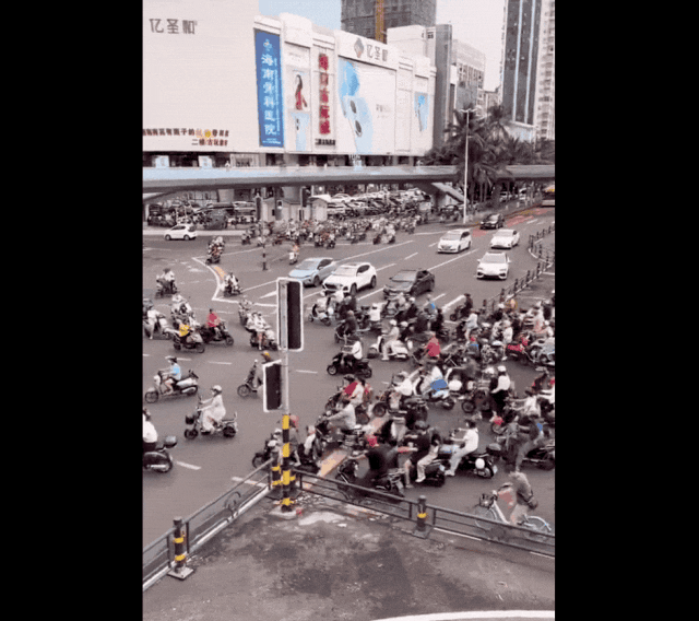 这是自动驾驶领域中一个比较难的场景,要考虑到地面引导标、左侧行人、前方车辆等情况,马斯克表示: