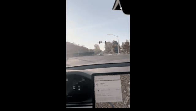 当时,想要直行的车辆在路口已经等了很久红灯,而在对面信号灯刚刚转为左转状态时,Model S竟突然跟着启动。