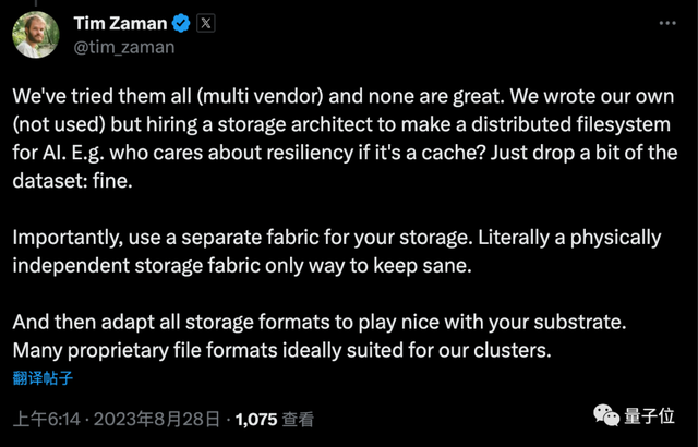 Tim Zaman表示尝试了很多云计算供应商,但没有一个足够好,聘请了存储系统架构师来开发AI专用的分布式文件系统。