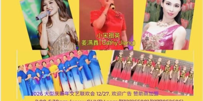纽约2026庆新年暨春节文艺晚会.热诚欢迎各界文化艺朮家,文艺团队,舞蹈,歌剧,演唱专才和社区侨团组织,工商企业团体,广告商,赞助商及个人私企老板等广告、赞助加盟. 晚会活动欢迎 大家报名参加. 节目表演 独唱 100.赞助 :$. 团体$50/人. 包桌 $ 488/桌.