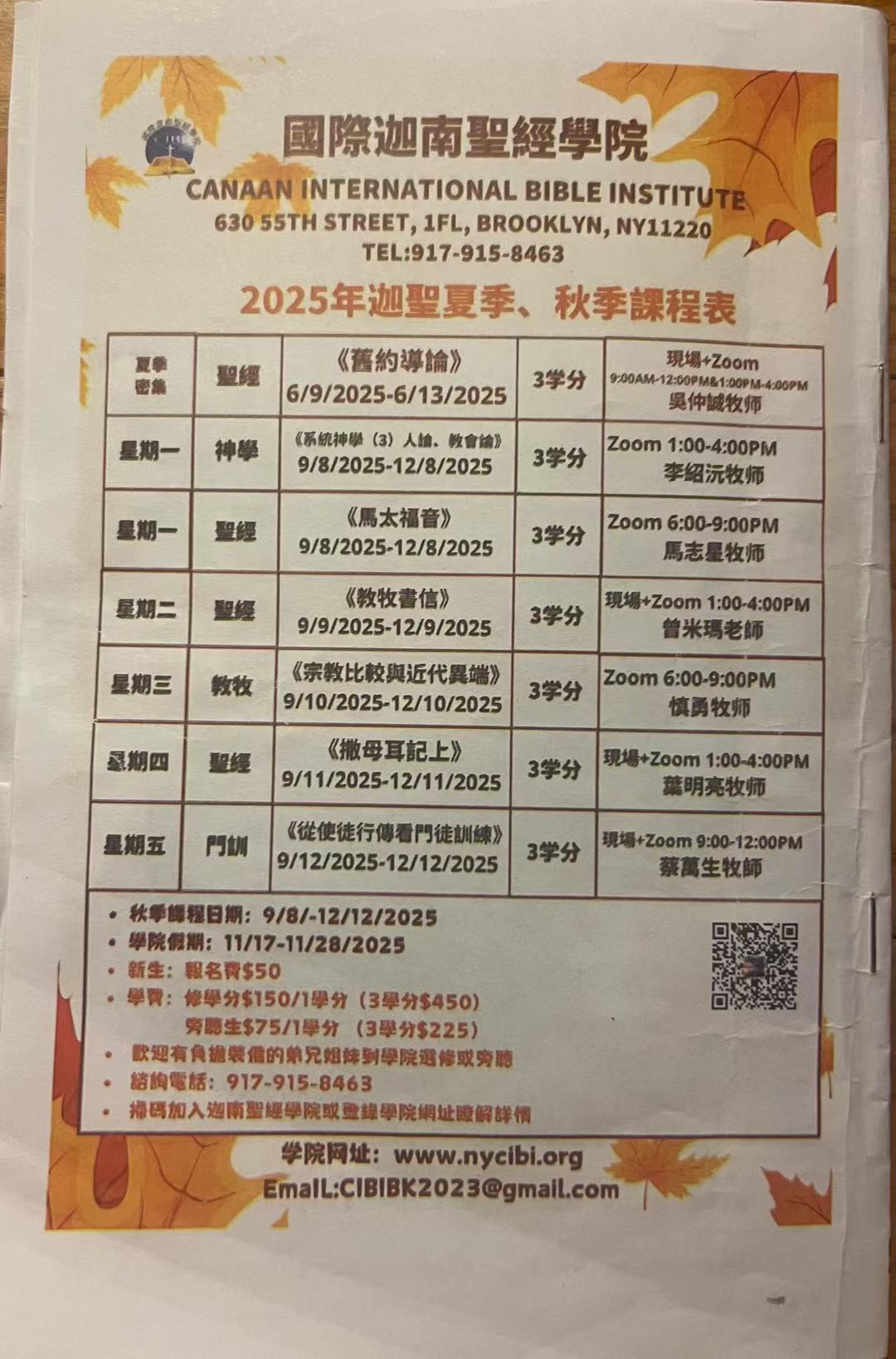 2025年「迦南圣经学院」灵命進深营 《装备与事奉》