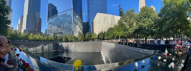 纽约墨人李兆银表示,“在纽约9/11恐袭事件至今已过去24年了。随着时间的流逝,该事件逐渐成为过去,但铭记那可怕一天的受害者和英雄们至关重要。当时几乎每个人都认识一些在世贸双子塔倒塌中遇难的人,我们铭记那些逝去的人们。在这个沈痛的周年纪念日,也有纽约居民来缅怀那些在9/11以及之后的岁月中丧生的人们,能见证今日纪念世贸中心遗址的活动,并与大家站在一起,意思非凡,永远铭记9/11。”晚上也可以见证了今年是九一一事件24周年纪念活动,由88盏灯的灯光组成的光束将照亮夜空,向当年的灾难受难者表达哀思,也督促幸存者及家人保护自己的权利。我们欣慰这道长生之光能持续亮起,成为纽约人希望与坚韧的象征。