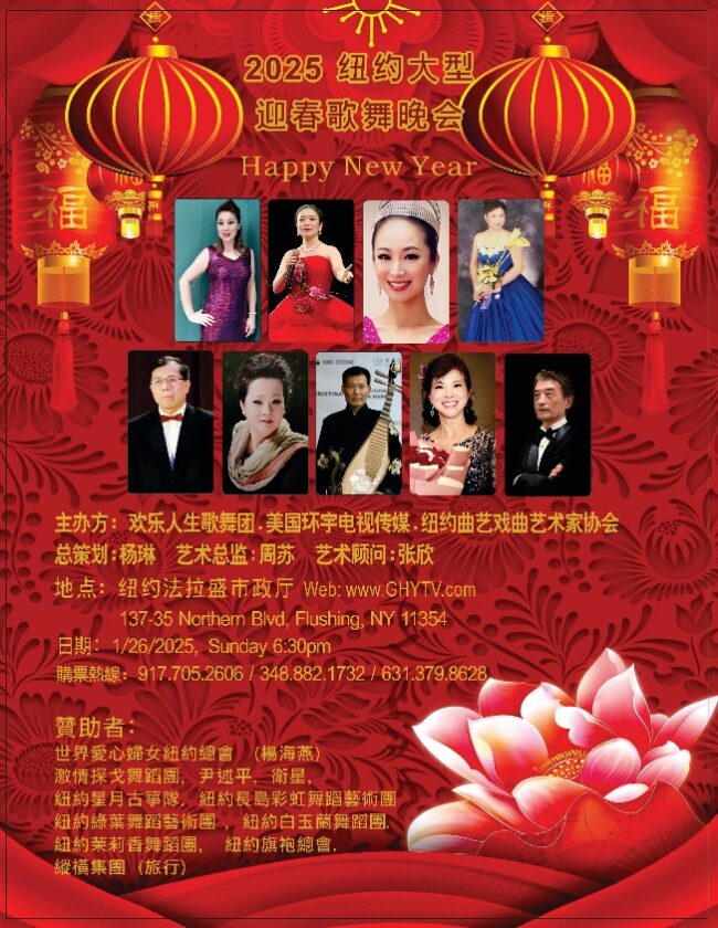 2025年 Celebrating Spring Festival Gala 纽约大型 庆春节-迎春歌舞晚会在纽约法拉盛 市政厅剧场举行1/26 新闻ghytv2025-01-252025年 Celebrating Spring Festival Gala 纽约春晚–大型迎春歌舞晚会在纽约…