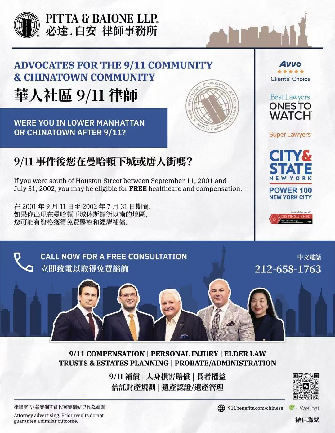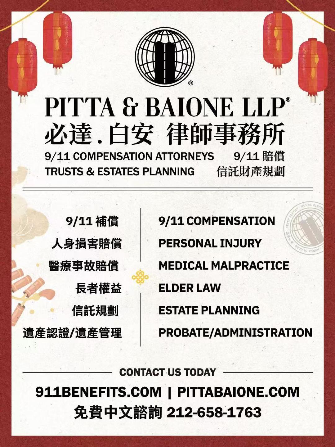 据该事务所客户关系经理罗亦纯女士介绍,每年都会收集华埠艺术大师的作品编制日历,能够协助华人艺术家一起推动中华文化艺术分享,特别的有意思。 必达.白安 律师事务所 积极参与华人社区活动,专门办理9/11 补偿,人身损害赔偿,医疗事故赔偿,长者权益,信托规划,遗产认证/遗产管理。免费中文咨询电话212-658-1763。