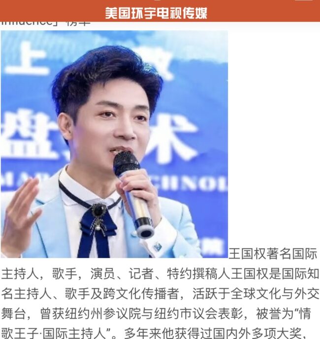 著名国际主持人,歌手,演员、记者、特约撰稿人-王国权老师 娱乐, 新闻, 社区新聞ghytv2026-04-26 著名国际主持人,歌手,演员、记者、特约撰稿人 王国权是国际知名主持人、歌手及跨文化传播者,活跃于全球文化与…