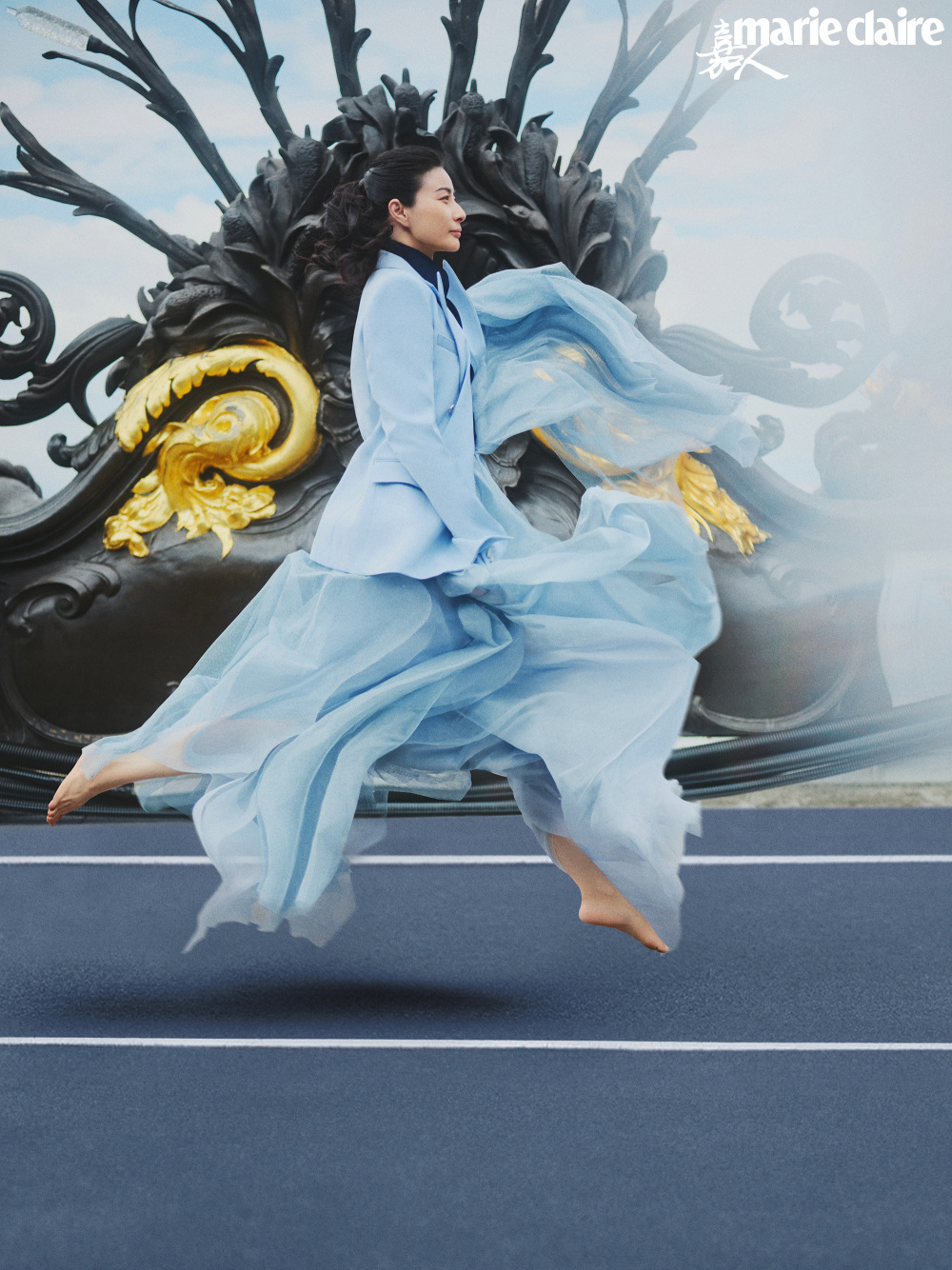 另一张奔跑的造型中,郭晶晶换了一条裙子,下颚线轮廓分明,手臂纤细,气质十分出众。