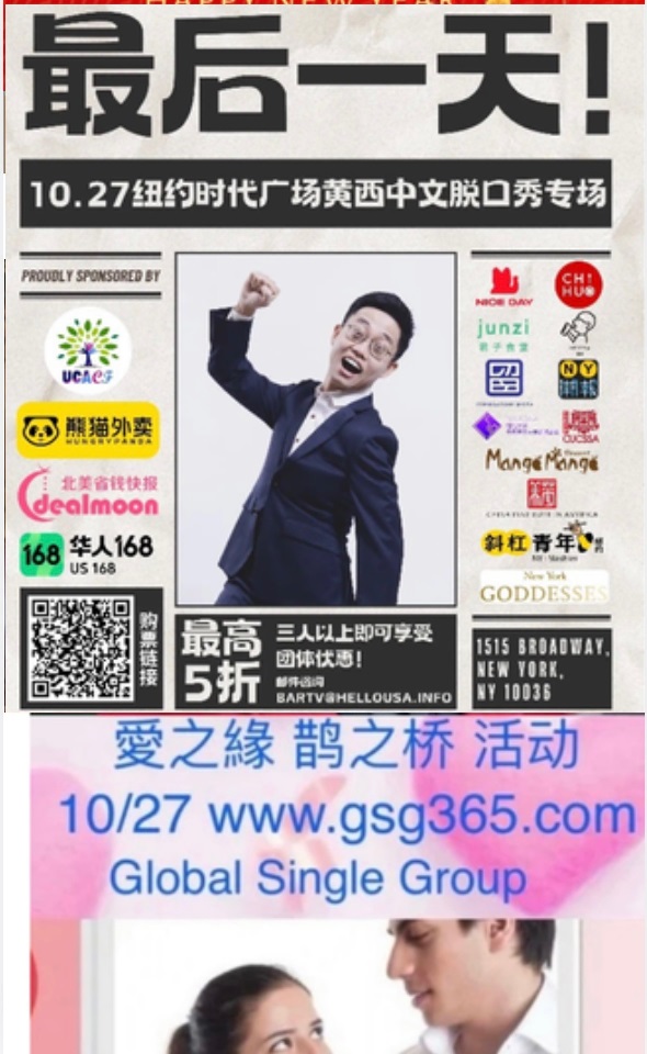 著名笑星-脫口秀之神 -黄西 (Joe Wang) 万圣节10/27 纽约时代广场Palladium剧院演出 少量门票订购: 娱乐, 广告商讯, 教育频道, 文娱频道, 新闻, 活動信息, 生活, 社区新聞ghytv2024-10-26著名笑星 黄西一 黄西纽约脱口秀来袭!笑到飞起的万圣节夜晚等你来 Hey NYC的朋友们!10月27日,准备好…