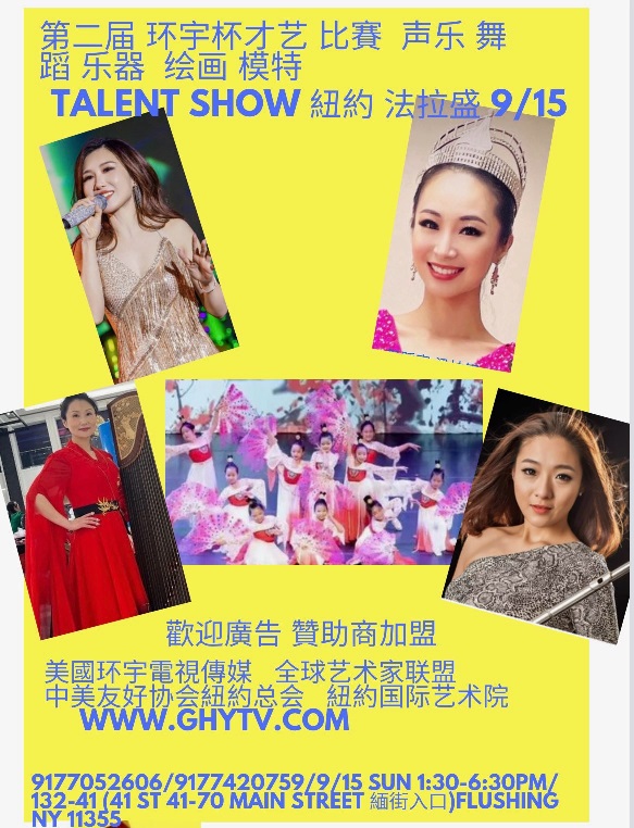 2024第二届 ( Talent TV Show) 全美环宇杯才艺比赛 9/15 纽约法拉盛举行 娱乐, 文娱频道, 新闻, 社会, 社区新聞ghytv2024-08-212024第二届 全美环宇杯才艺 ( Talent TV Show) 比赛 9/15 纽约法拉盛举行 由美国环宇…