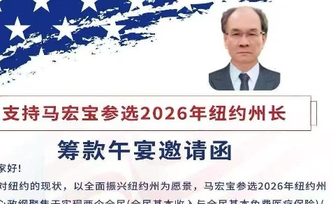 马宏宝博士参选纽约州长政纲说明、研讨与筹款午宴 10/18 欢迎大家参加