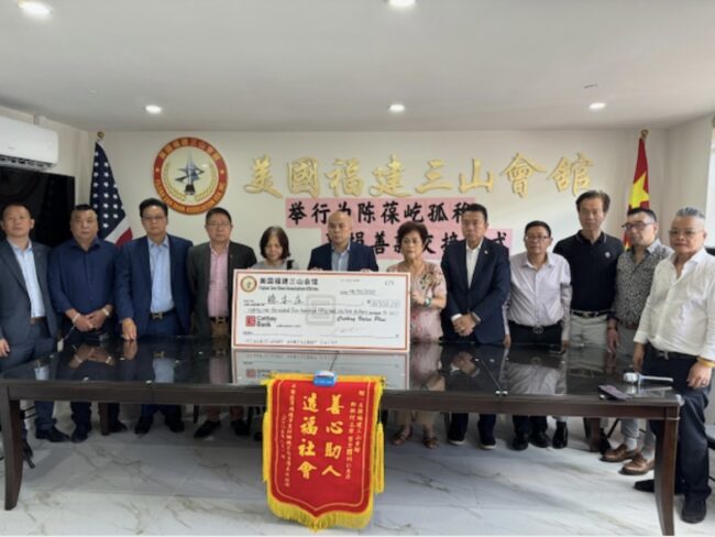 8月26日,美国福建三山会馆举办“为陈葆屹的三位孤稚募捐善款交接仪式”发布会在纽约举行。出席今天活动的有美国福…