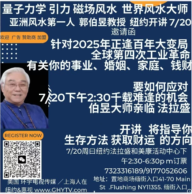 现代量子风水 引力风水 磁场风水专家 中国堪舆星相学家 心灵科学净化专家-婚恋辅导专家郭伯昱教授纽约法拉盛开讲…