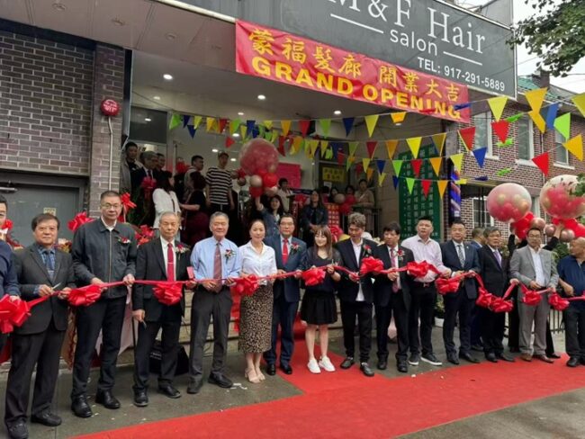 6月14日,纽约闽籍侨领共同祝贺“蒙福髪廊”在布碌仑大达道隆重开张,参加今天剪彩有布鲁克林闽恩教会长老陈宗荣 …