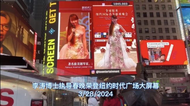 著名旅美钢琴家/中美艺术大使/春晚总导演李涛博士执导《2024全球精英纽约国际春晚》受邀荣登纽约时代广场大屏幕展播! 娱乐, 广告商讯, 新闻, 生活, 社会ghytv2024-04-01著名旅美钢琴家/中美艺术大使/春晚总导演李涛博士执导《2024全球精英纽约国际春晚》受邀荣登纽约时代广场大屏幕…