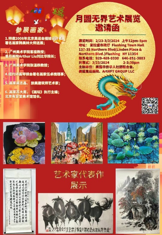著名画家-月圆无界艺术展览 紐約 发拉盛市政厅 开幕 2/23/2024 娱乐, 广告商讯, 新闻, 活動信息, 生活, 社会ghytv2024-02-17本台讯 著名画家-月圆无界艺术展览 將在紐約发拉盛市政厅 开幕2/23/2024 主辦单位:美国华侨华人社团…